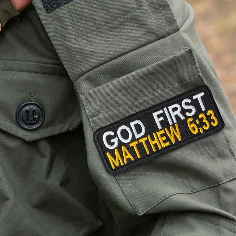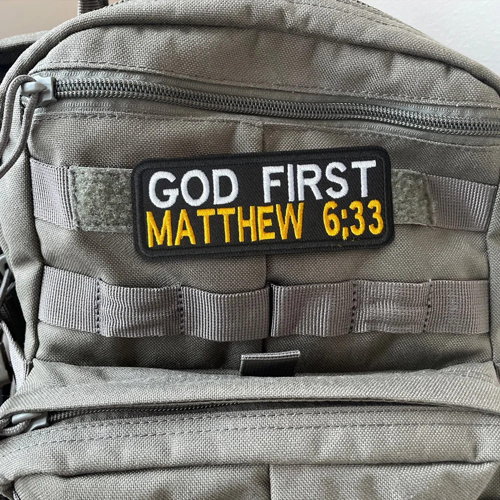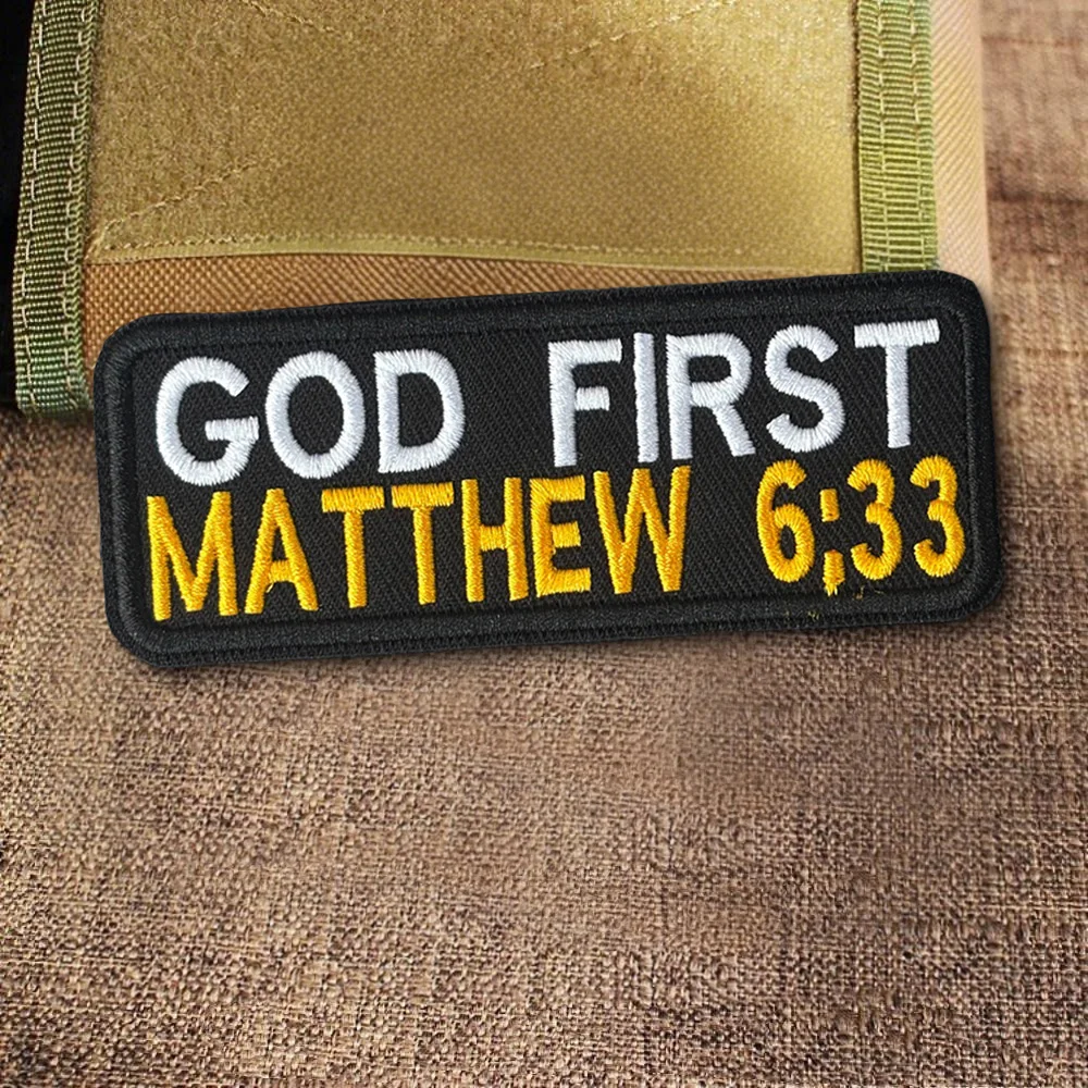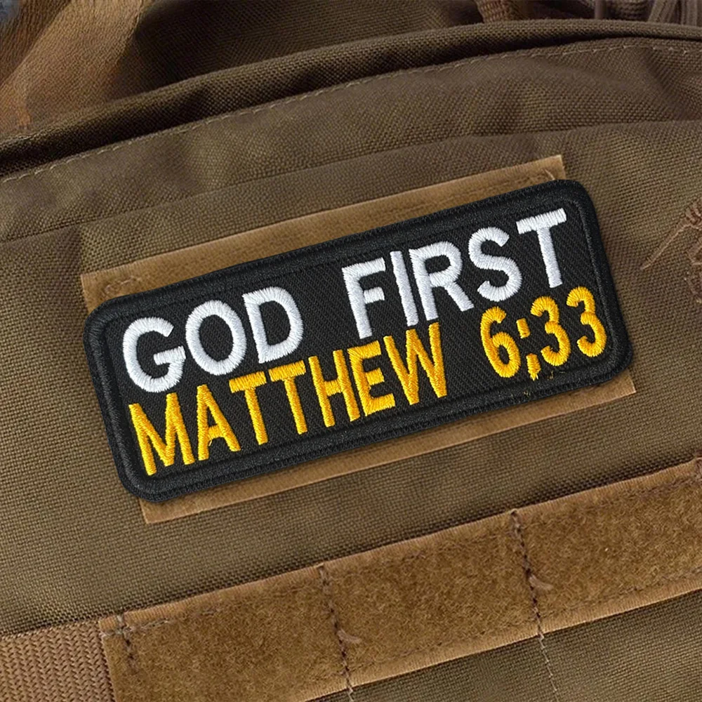 MATTHEW 6:33 DIOS PRIMERO moral parche táctico JESUS apliques militares gancho bucle bordado parches chaleco mochila pegatinas1.Debido a las diferentes resoluciones de los dispositivos electrónicos, el color puede ser ligeramente diferente al color real.