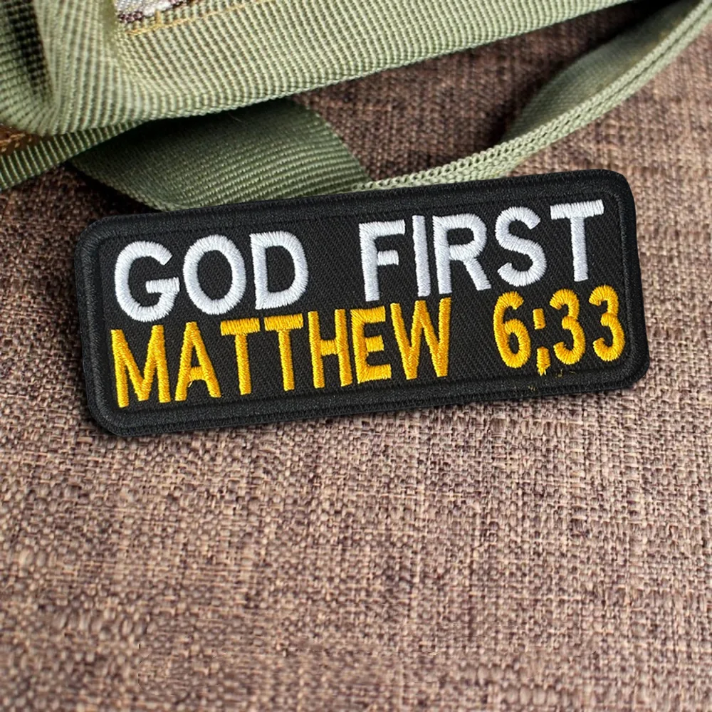 MATTHEW 6:33 DIOS PRIMERO moral parche táctico JESUS apliques militares gancho bucle bordado parches chaleco mochila pegatinas1.Debido a las diferentes resoluciones de los dispositivos electrónicos, el color puede ser ligeramente diferente al color real.