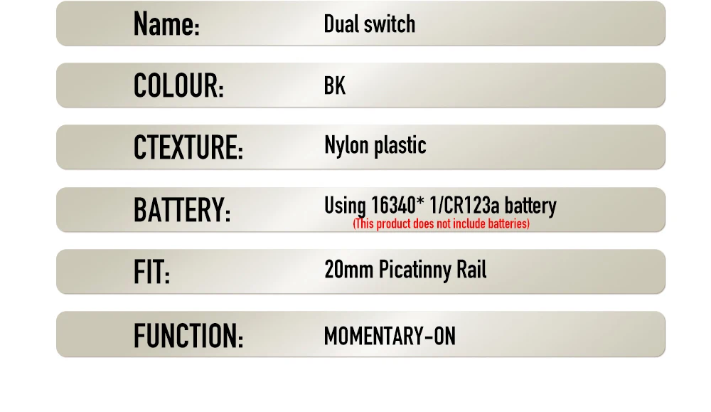 Batería: batería de 3,7 V 16340 o batería CR123A (el producto no incluye batería)