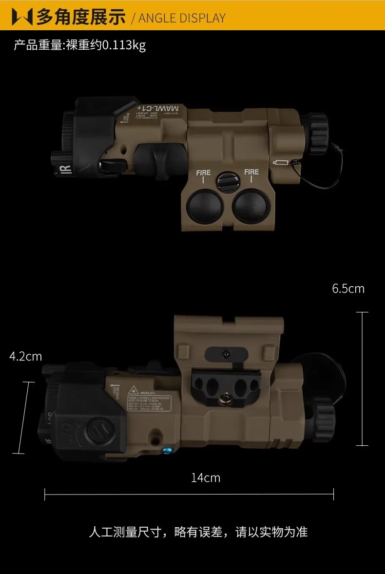 MAWL-C1 táctico versión funcional linterna láser roja/verde montaje en riel intercambio izquierdo derecho lado a lado
