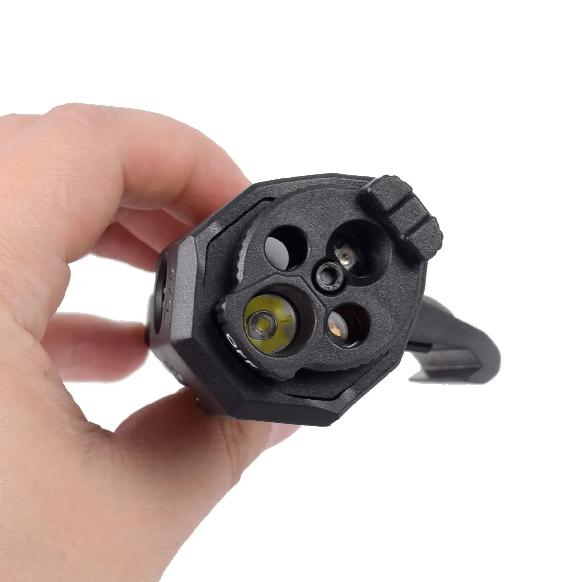 1. Button A: Click the button to activate the visible LED instantly; double-click the button to activate the visible LED, click the button again, the visible LED will turn off; Long press the button to activate the visible laser, long press the button again to turn off the visible laser.