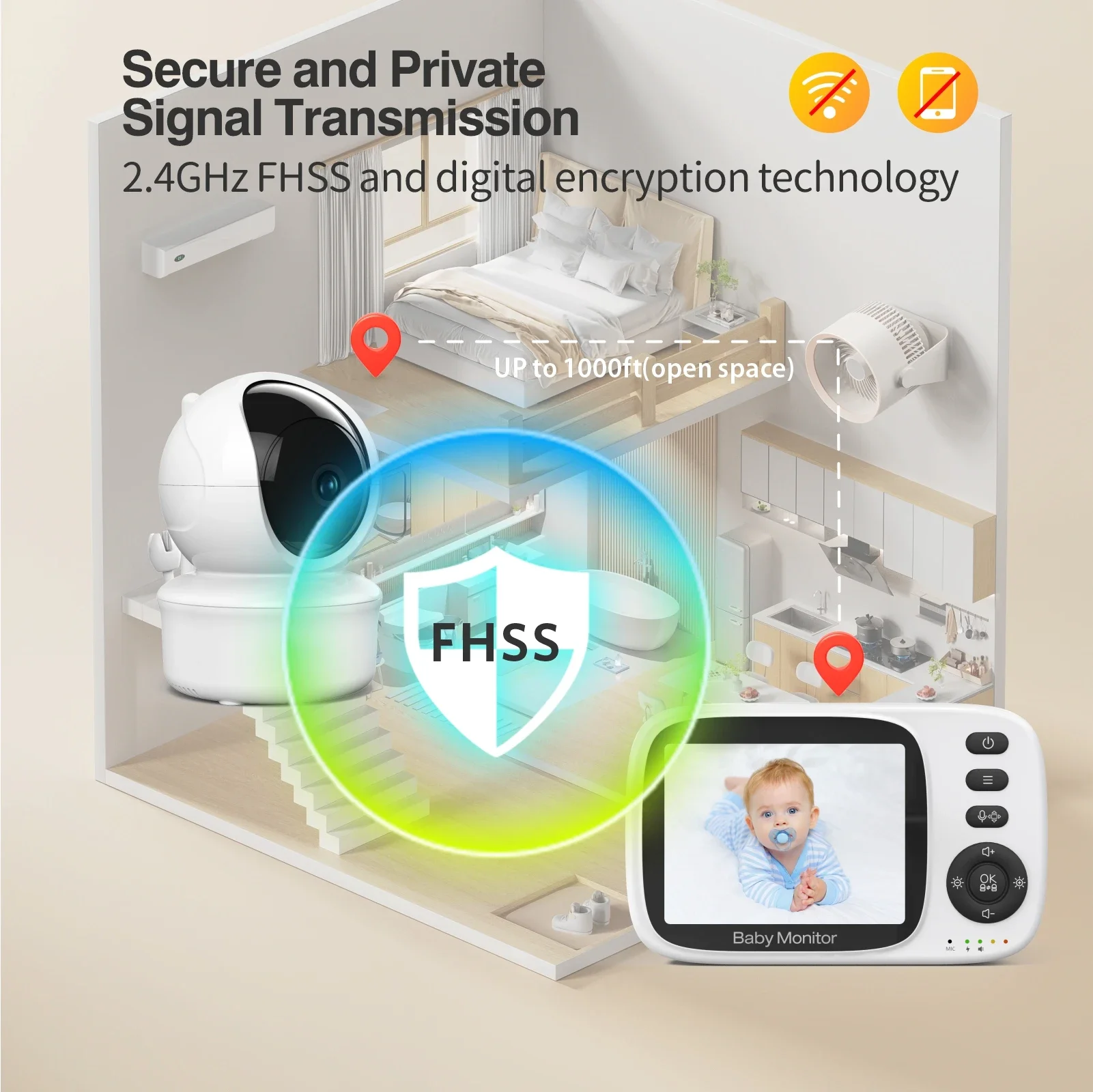MC632A-PTZ Monitor de bebé con Zoom 2x de 3,2 ", visión nocturna, música, detección de temperatura, intercomunicador bidireccional, Monitor de bebé, batería de 1200 MAh
