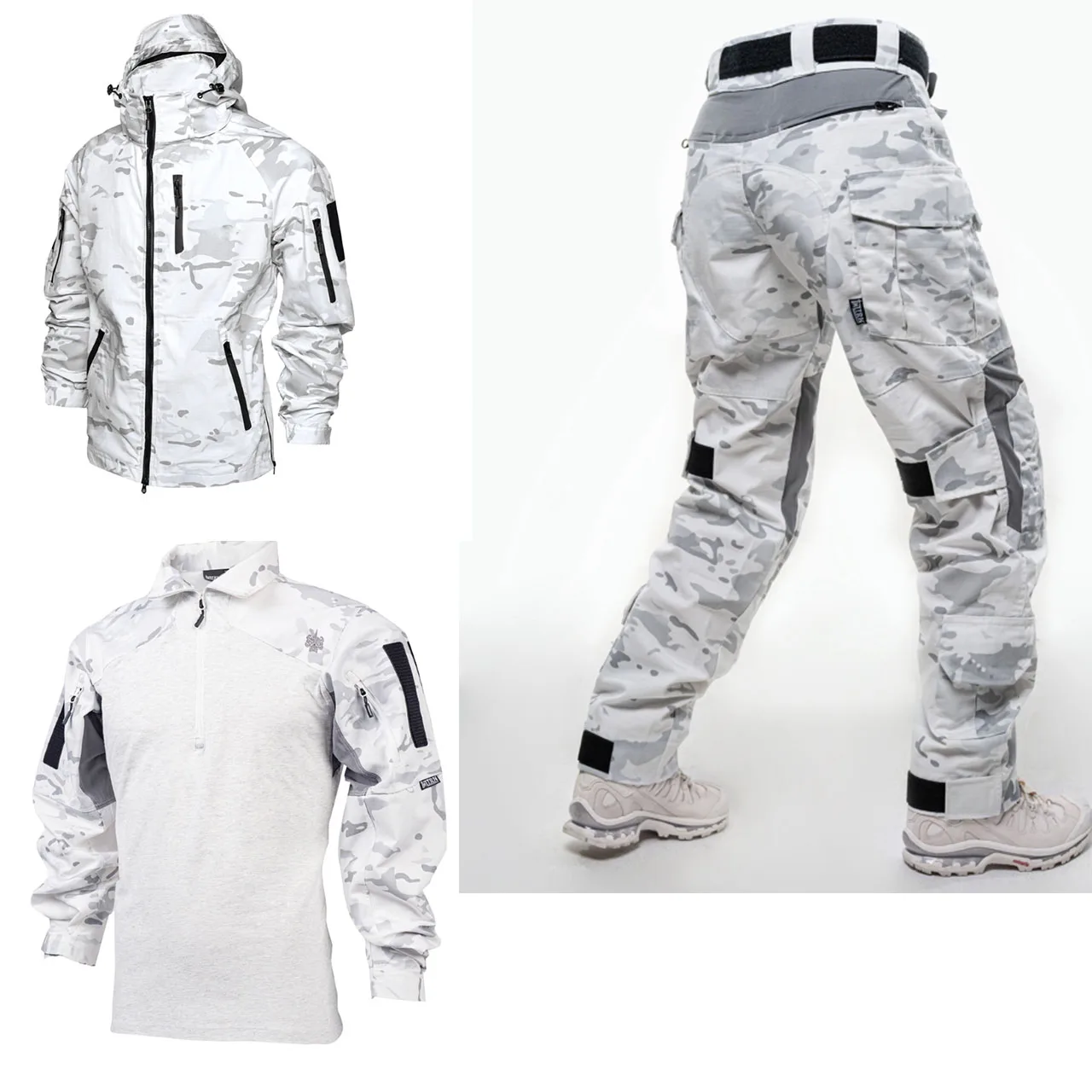MCAP Camisa transpirable de camuflaje blanco para nieve, uniforme de entrenamiento de manga ancha, Top, abrigo, pantalones, ropa