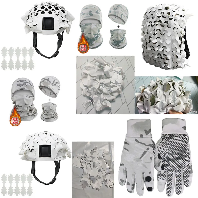 MCAP invierno camuflaje blanco nieve Camo 3D cubierta de casco táctico al aire libre tiras de tela, bufanda máscara, guantes, gorra, correas