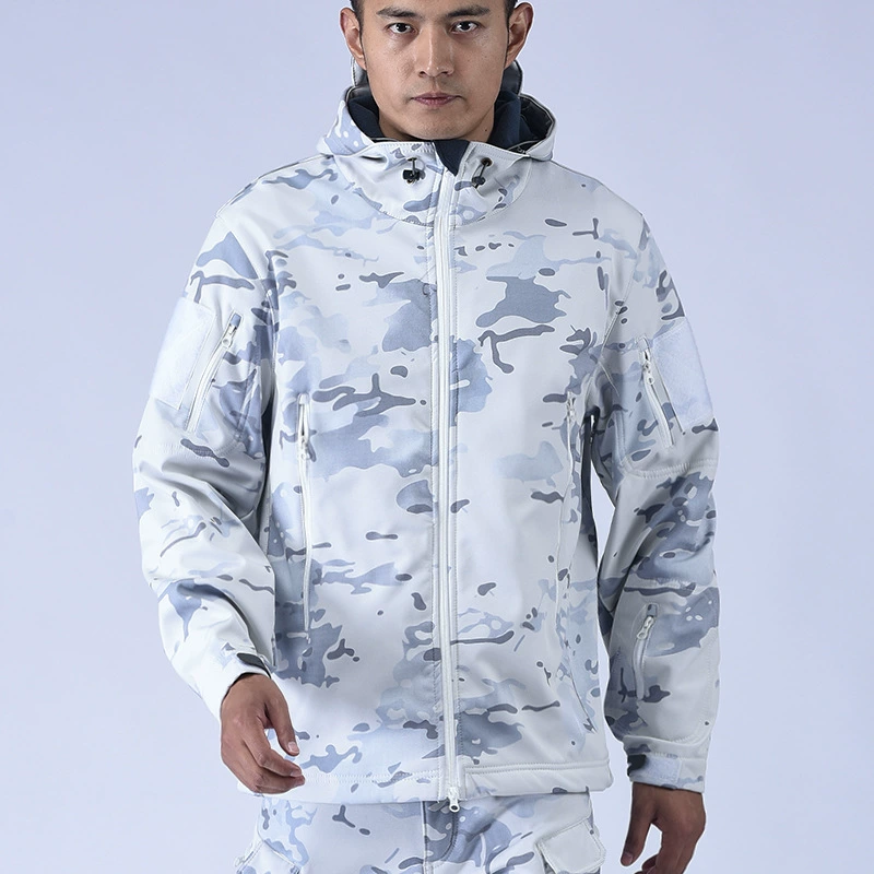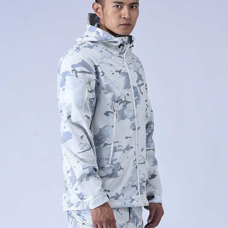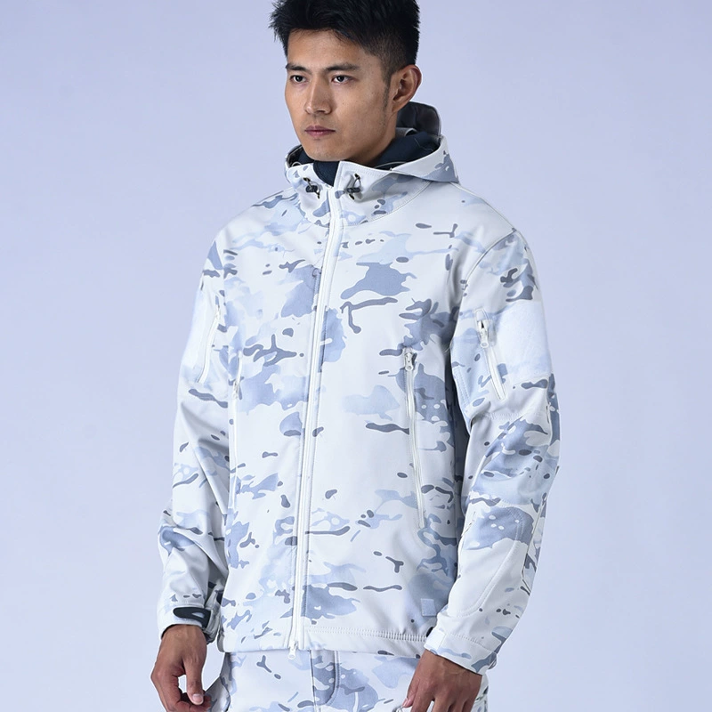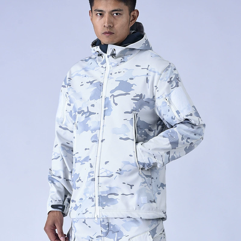 MCAP Snow Camo TAD Sudadera con capucha con cremallera en las axilas con cortavientos 3 en 1 impermeable de terciopelo y sudadera con capucha de concha suave, pantalones gruesos de montañismo