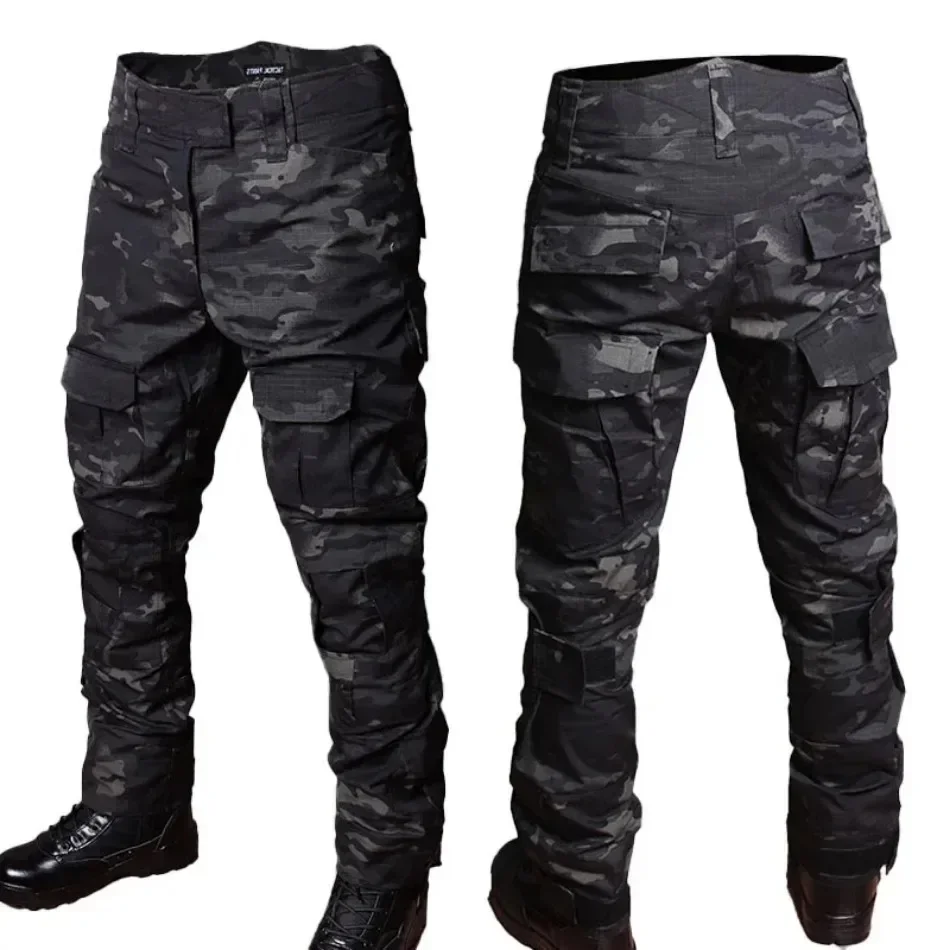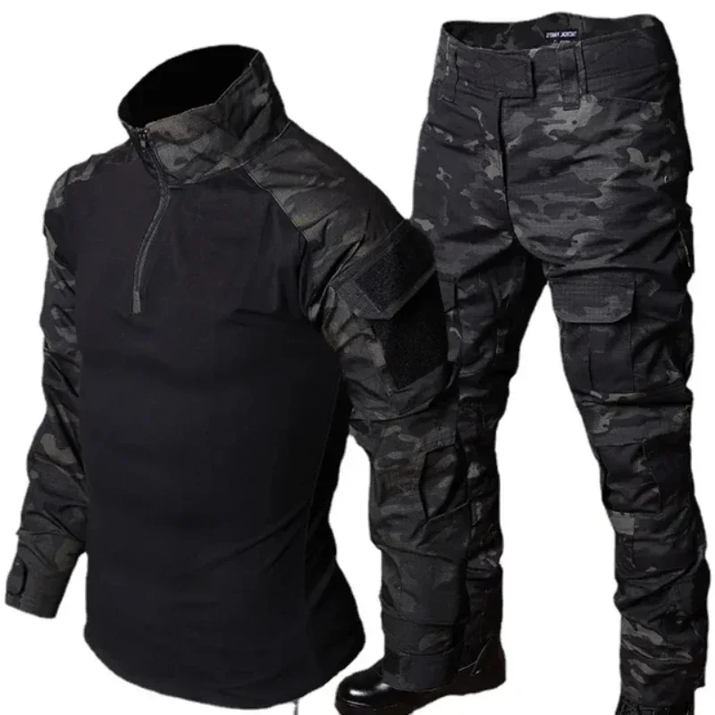 Conjunto de entrenamiento de camuflaje negro para hombre, Tops de combate con media cremallera, traje táctico impermeable, elástico, múltiples bolsillos, secado rápido, 3 uds.
