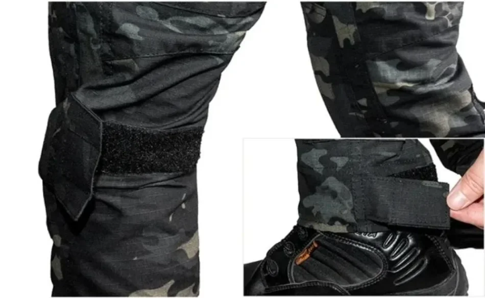 3.Cierres ajustables de gancho y bucle en la parte inferior y rodillas de los pantalones.