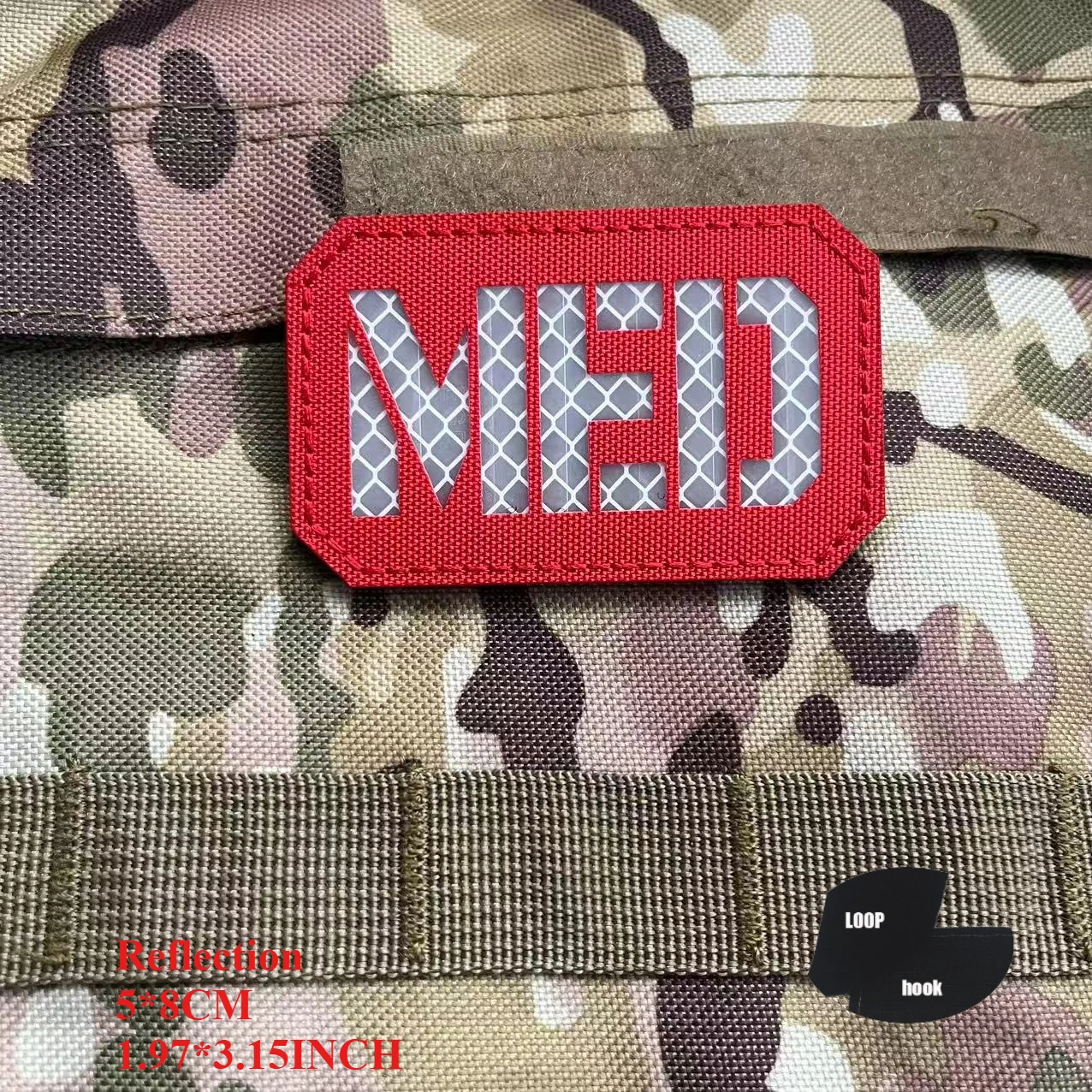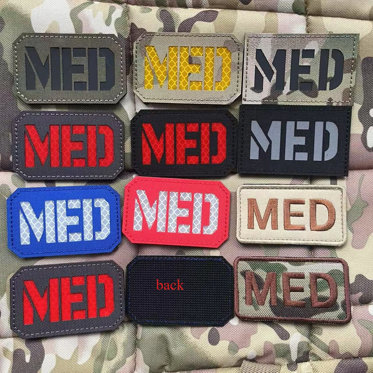 Atrás.El parche bordado/reflectante tiene gancho y bucle, el parche de PVC solo tiene gancho (si desea un bucle, compre un bucle de 8 CM).