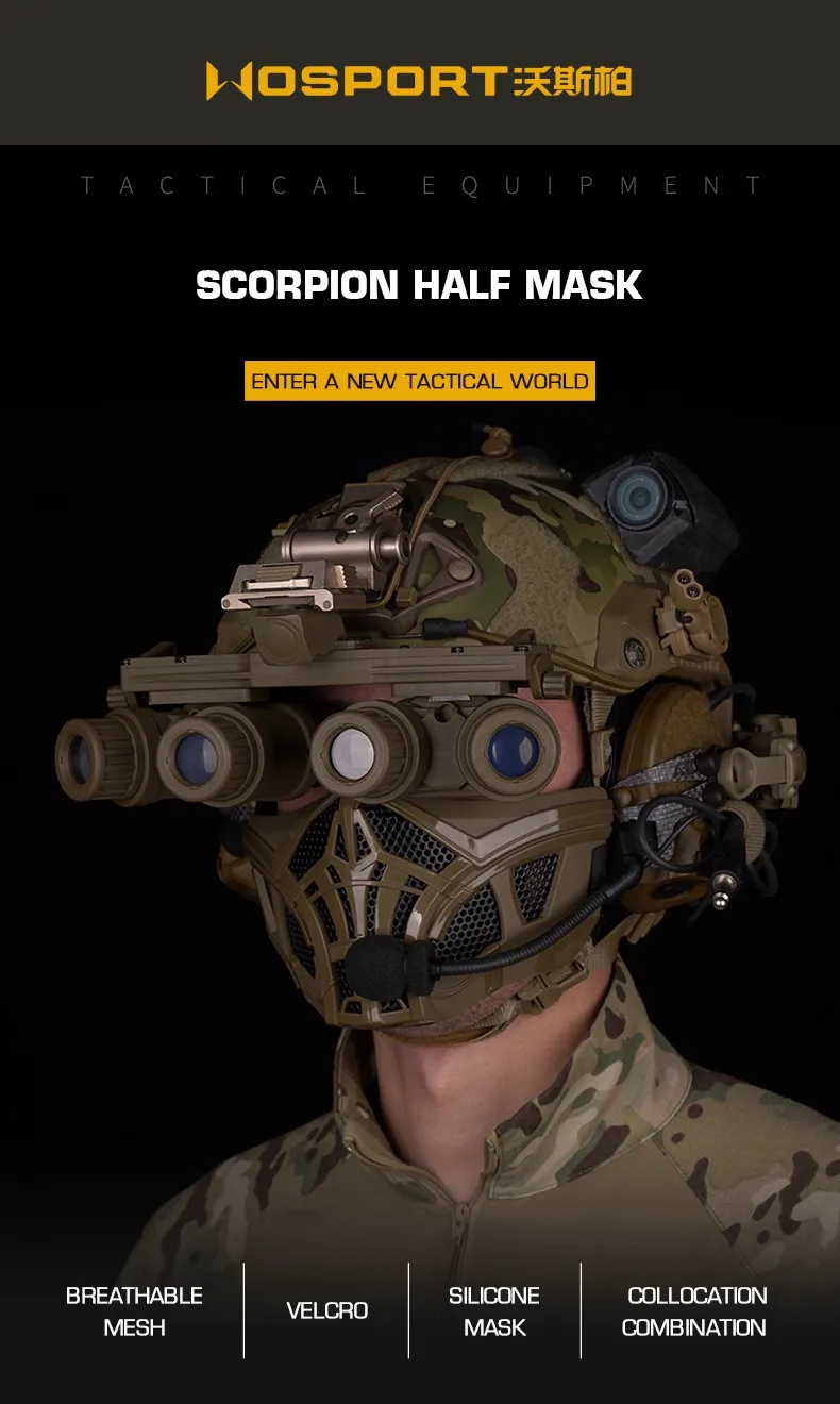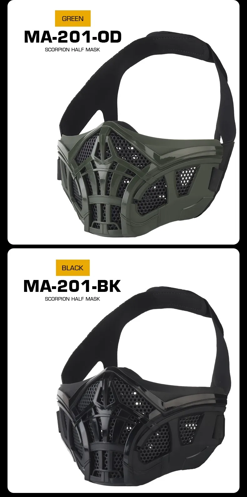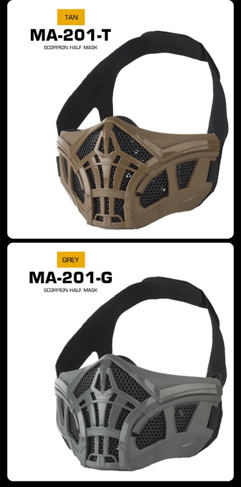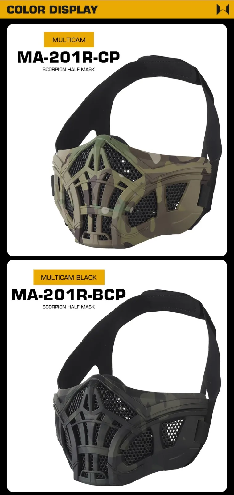 Media máscara táctica de escorpión, media máscara protectora Airsoft, diseño interior de silicona, máscaras transpirables