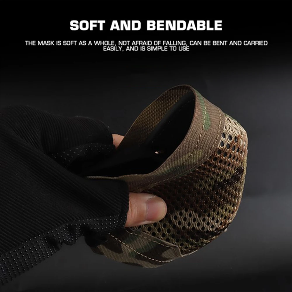 Material transpirable: la máscara de Airsoft está hecha de material de tela elástica, un tejido suave, ligero y altamente transpirable que no irrita la piel.