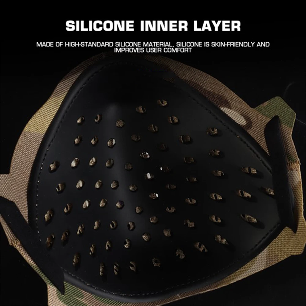 Máscara de media cara de tiro: La máscara táctica con filtro de máscara es compatible con la mayoría de gafas y combina perfectamente con el casco táctico para dar protección completa a toda la cabeza.