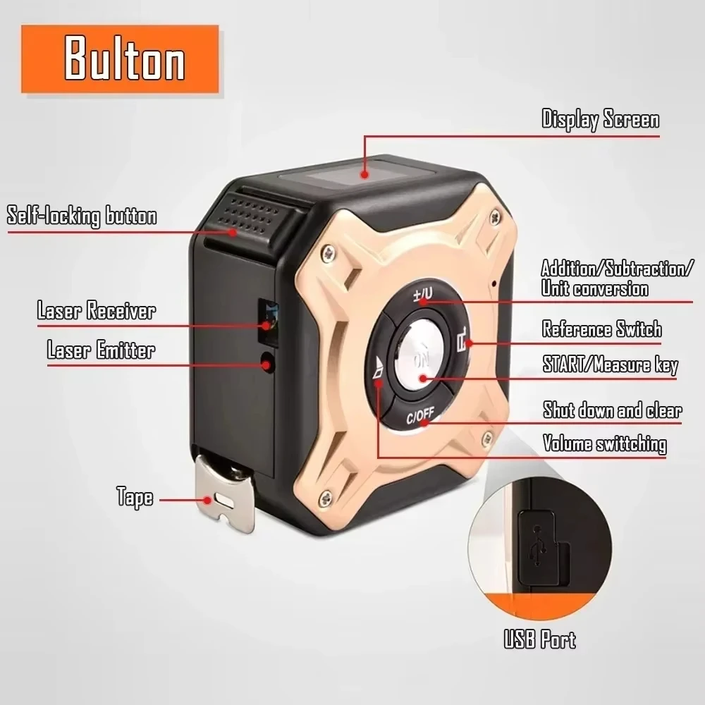 Con el dispositivo de bloqueo automático, bloquee automáticamente la posición de medición actual después de sacar la cinta, presione el botón de desbloqueo para rebotar automáticamente la cinta, es más seguro y ya no lastimará sus manos.