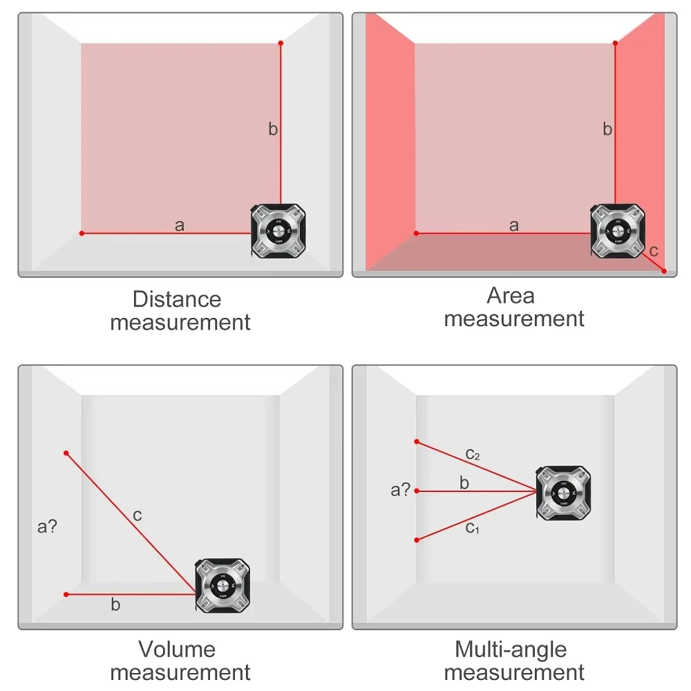 El medidor de alcance láser está diseñado para mediciones de larga distancia y con función de marcado cruzado láser, lo que proporciona una buena referencia de líneas horizontales y verticales para el proyecto de renovación.