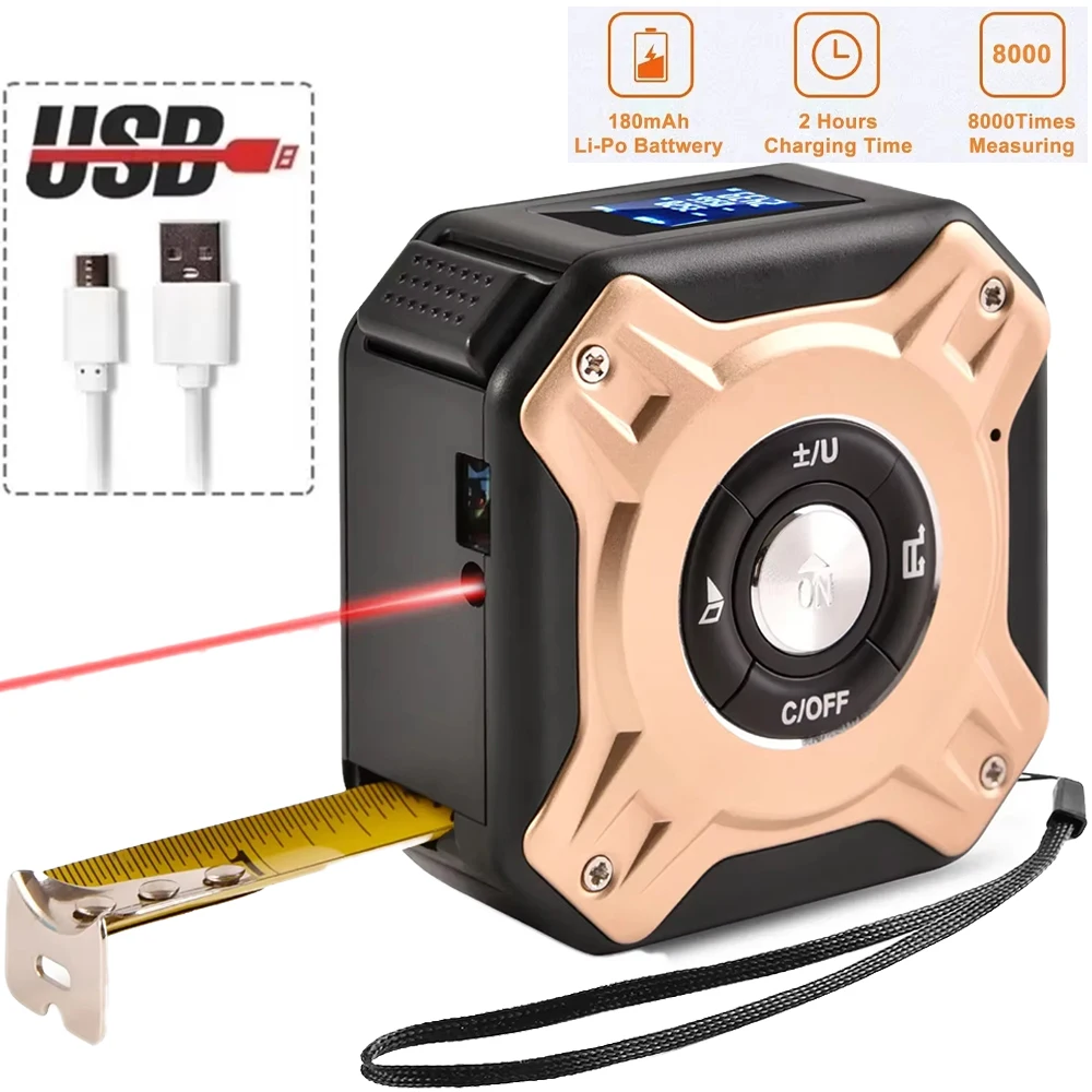 Telémetro láser digital de diseño 3 en 1, alcance láser, cinta métrica de 5 m y marcado cruzado láser, todo en uno.
