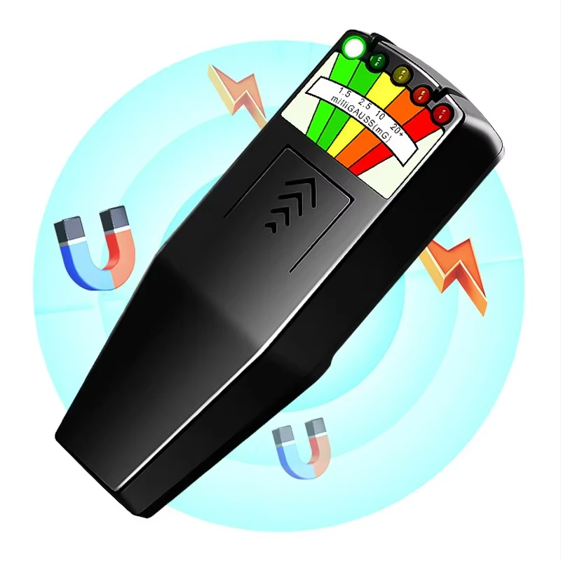4.Funciona con batería e informa valores de medición de EMF en el rango de 5 miligauss.