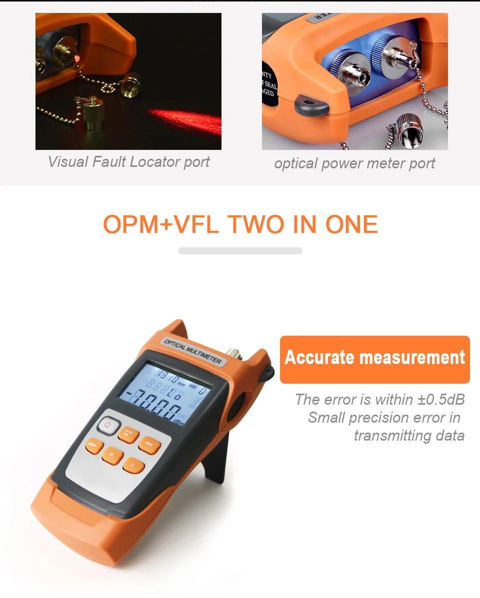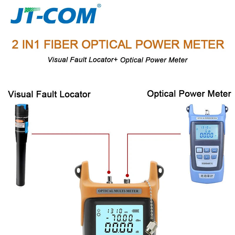 Medidor de potencia óptica 2 en 1 Localizador visual de fallas Probador de cable de fibra óptica óptico -70 a + 3dBm 15mW con localizador visual de fallas de 15 km para probador de decaimiento de luz de fibra