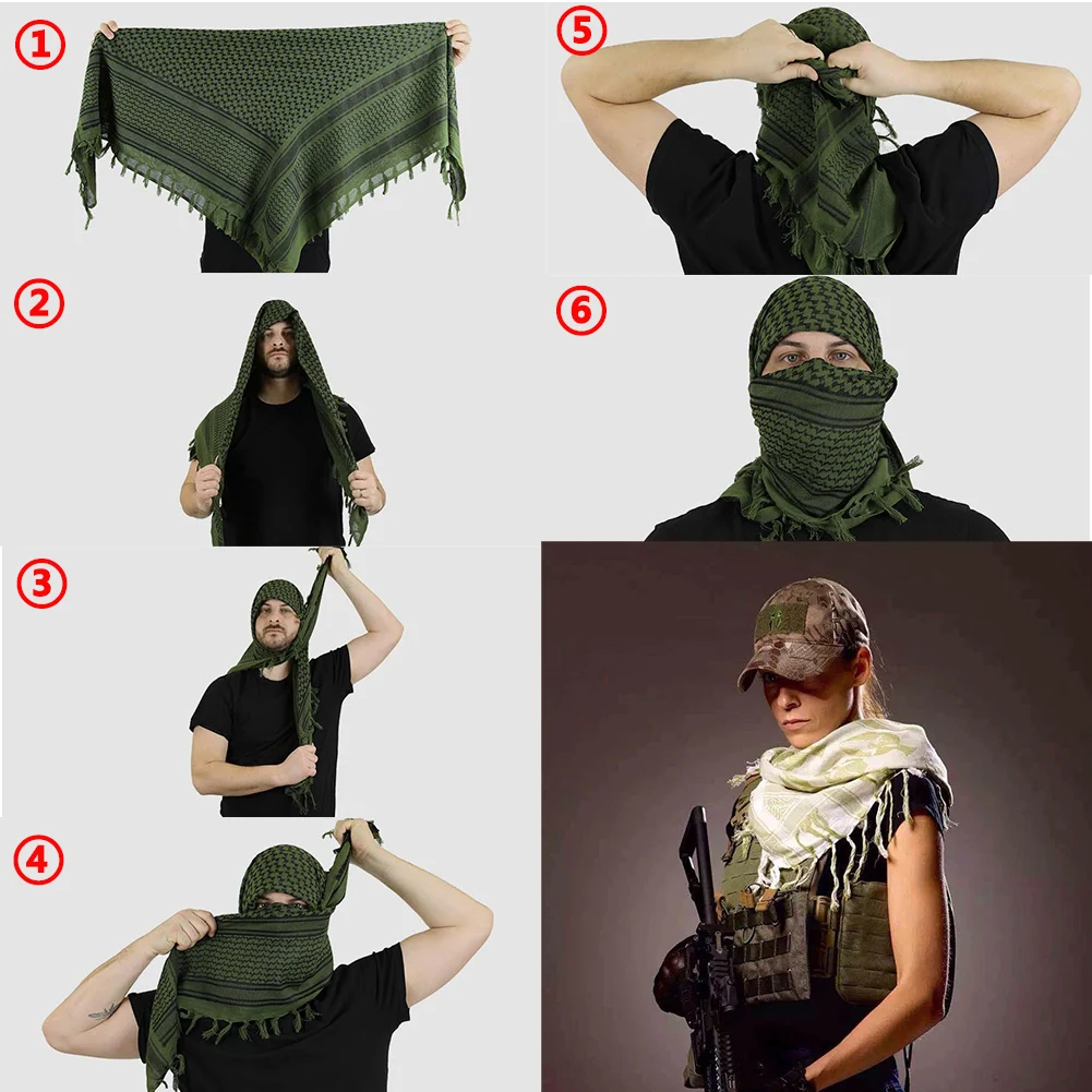 El shemagh es una bufanda tradicional de Oriente Medio que fue adoptada por soldados que trabajan en climas desérticos duros. El personal militar premia esta prenda versátil porque puede servir para muchas funciones. Nuestros shemaghs ligeros proporcionan una excelente protección contra la exposición al sol, los vientos duros y la arena soplada. Construido para la batalla, Estas resistentes bufandas también funcionan bien para uso civil. Puede usar uno como bufanda resistente en el invierno o como protección para la cabeza y el cuello del sol durante deportes al aire libre o trabajos duros. Estos shemaghs son lo suficientemente resistentes como para soportar condiciones duras, pero lo suficientemente suaves para un uso cómodo y durante todo el día.