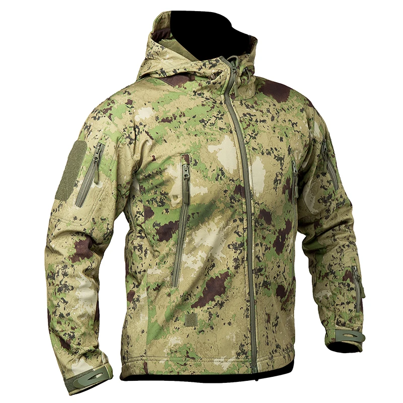 Mege-Chaqueta táctica de camuflaje, Sudadera con capucha de combate, cortavientos con múltiples bolsillos, piel de tiburón, impermeable, Softshell