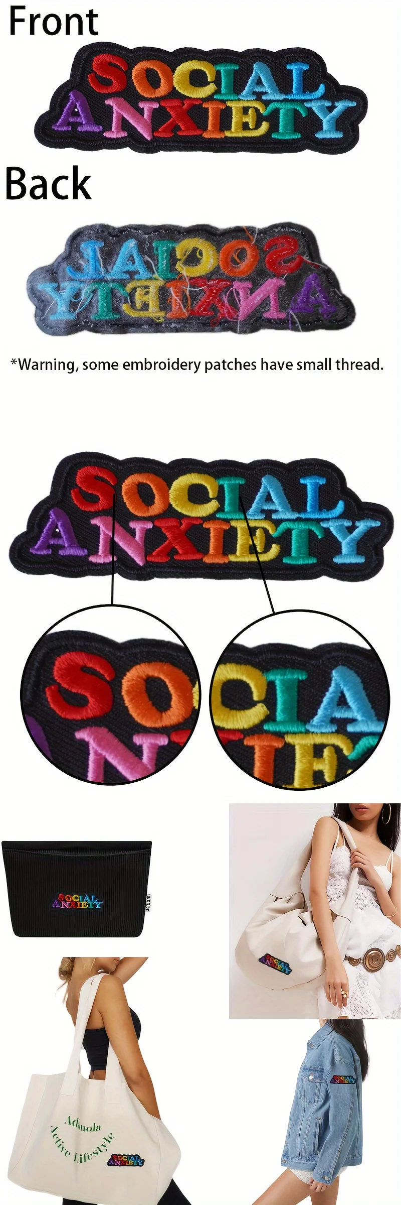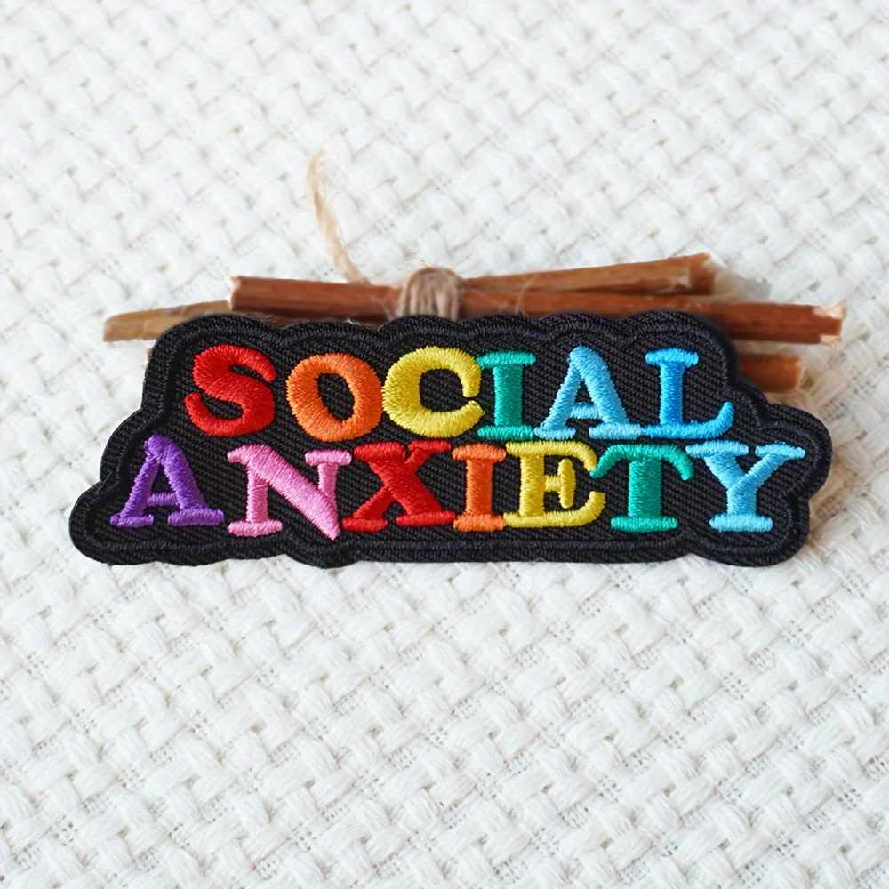 Meme divertido "ANXIETY SOCIAL", parche bordado de Color arcoíris, apliques para planchar/coser, reparación de insignias para ropa DIY, 1 ud.