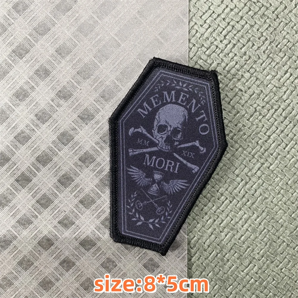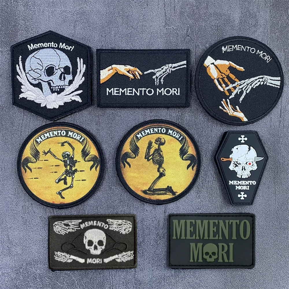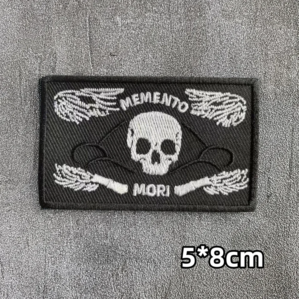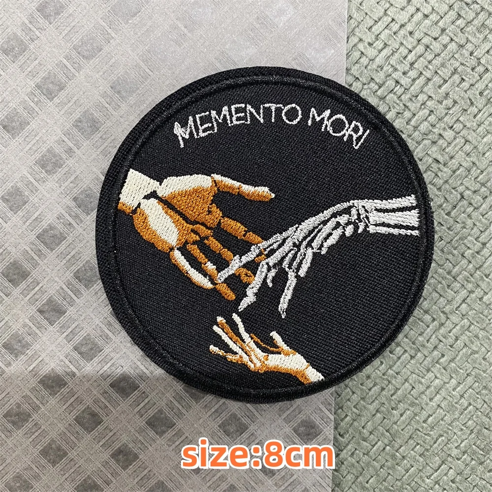 Memento Mori táctico moral insignia gancho y bucle esqueleto dedo bordado brazalete parche mochila pegatinas apliques para ropa