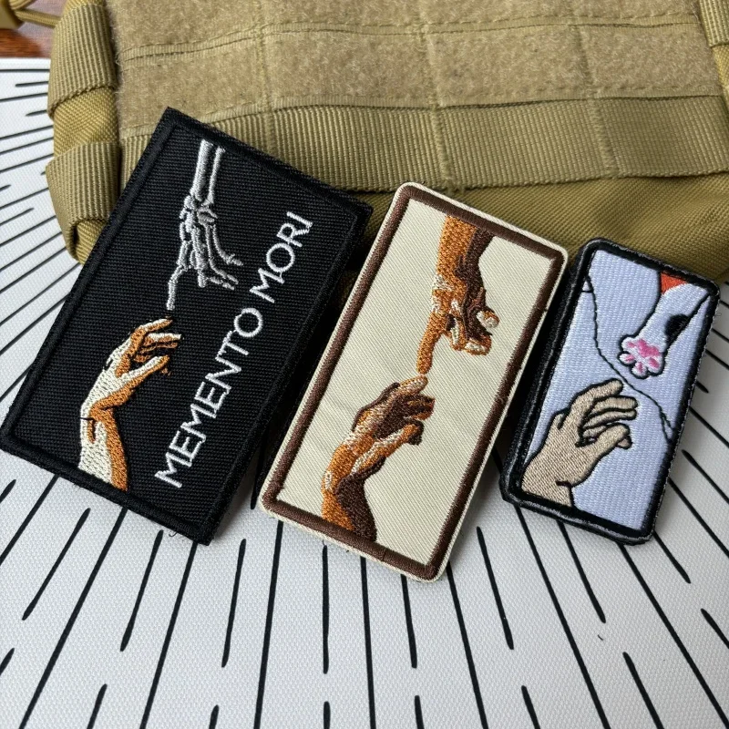Memento Mori-parche bordado a mano con calavera, divertida creación de Adam, brazalete con gancho y bucle, insignia de moral, pegatinas tácticas para mochila