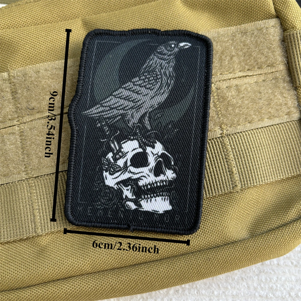 MEMENTO MORI parche de cuervo cráneo insignia de moral militar brazalete impreso parches de gancho y bucle ropa táctica pegatinas para mochila