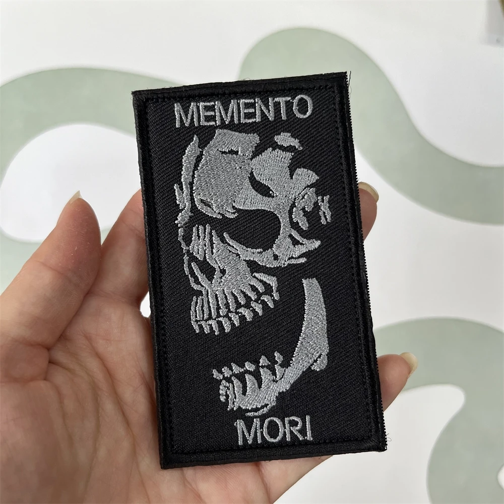 Parche de insignia de moral "Memento Mori", parches bordados de esqueleto, brazalete táctico, pegatinas de gancho y bucle para mochila