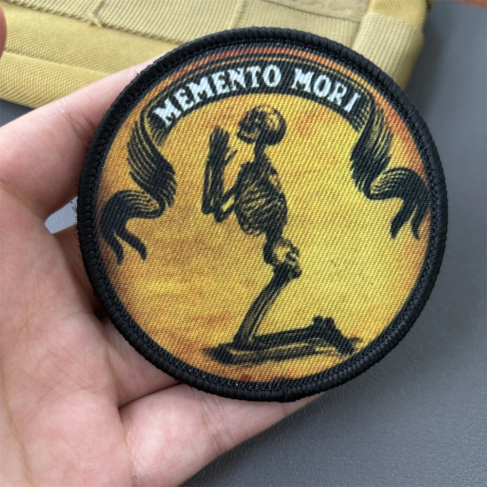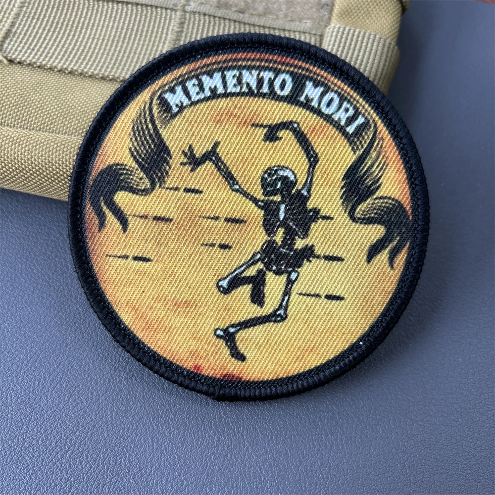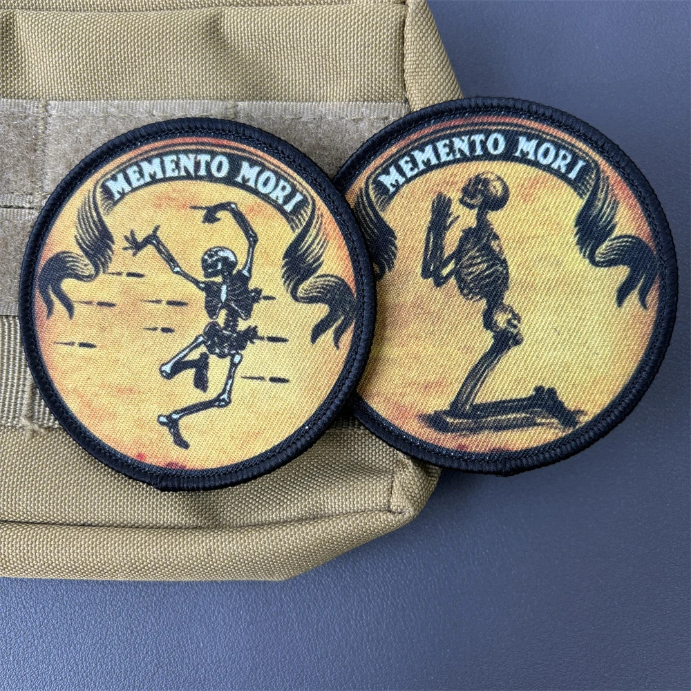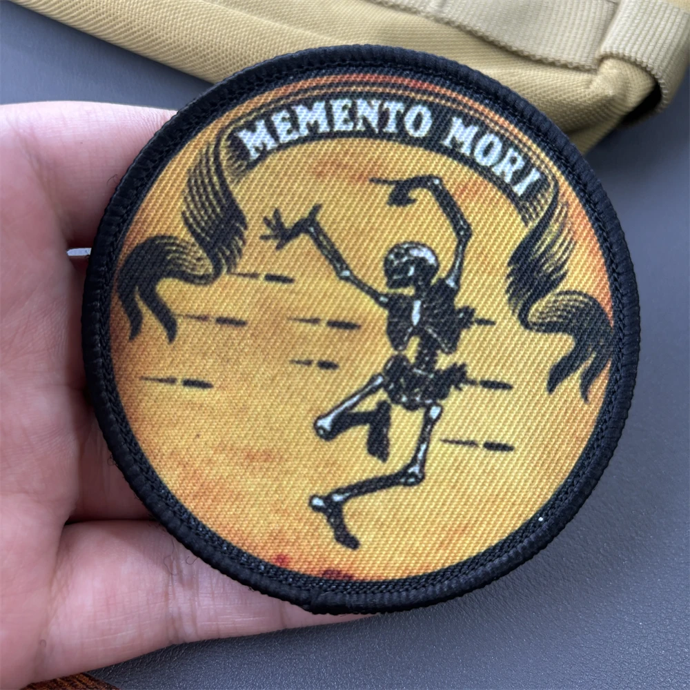 Memento Mori Skull Morale insignia táctica parches impreso baile orando cráneo brazalete gancho y bucle Chevron mochila chaleco pegatinas
