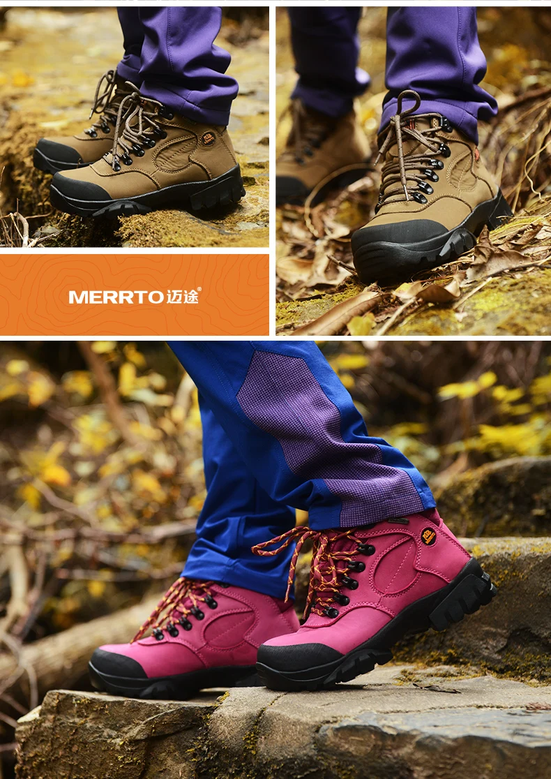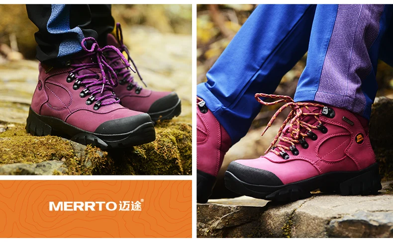 MERRTO-zapatos de senderismo impermeables de piel de vaca para mujer, zapatillas transpirables para escalada, senderismo, caza, turismo, botas de montaña