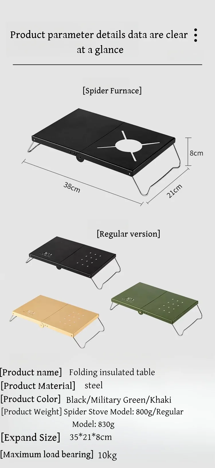 Mesa plegable para exteriores, mesa de Picnic portátil, estufa de Cassette, placa de acero, mesa de estufa de araña, mesa de aislamiento térmico para acampar
