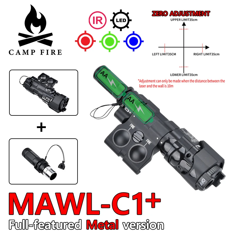 Metal MAWL C1 AA versión de batería verde IR láser rojo Dot Ray Tactical Metal cola extendida cubierta accesorios de modificación de caza