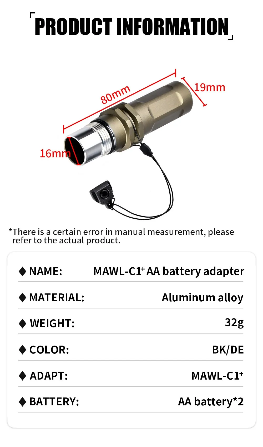 WADSN Metal MAWL C1+ iluminador IR de mira láser de punto rojo mejorado con batería AA ADAPTADOR Airsoft pistola accesorios para armas