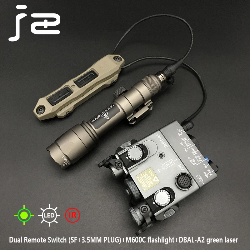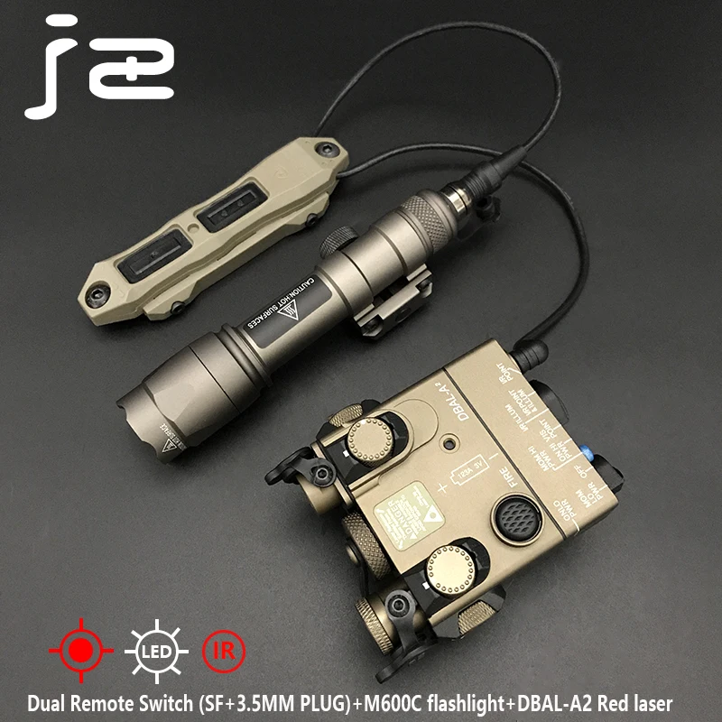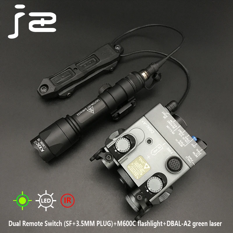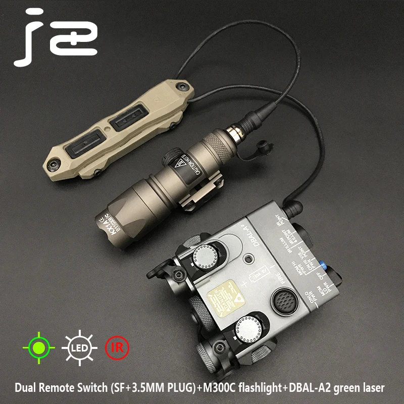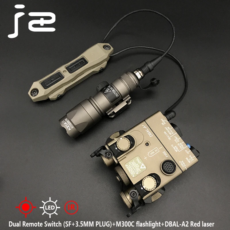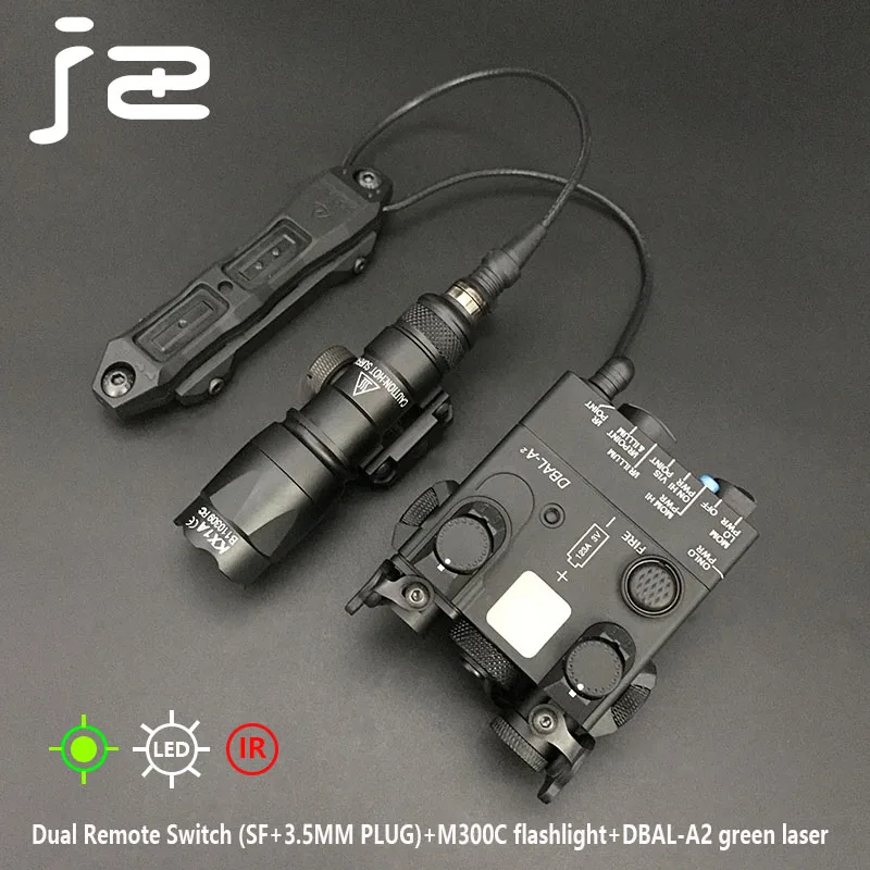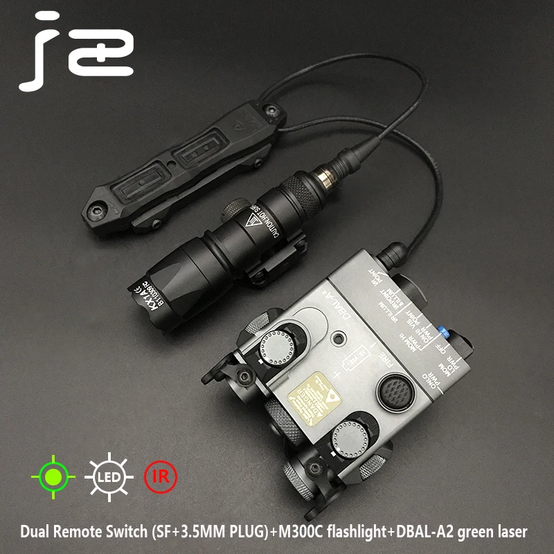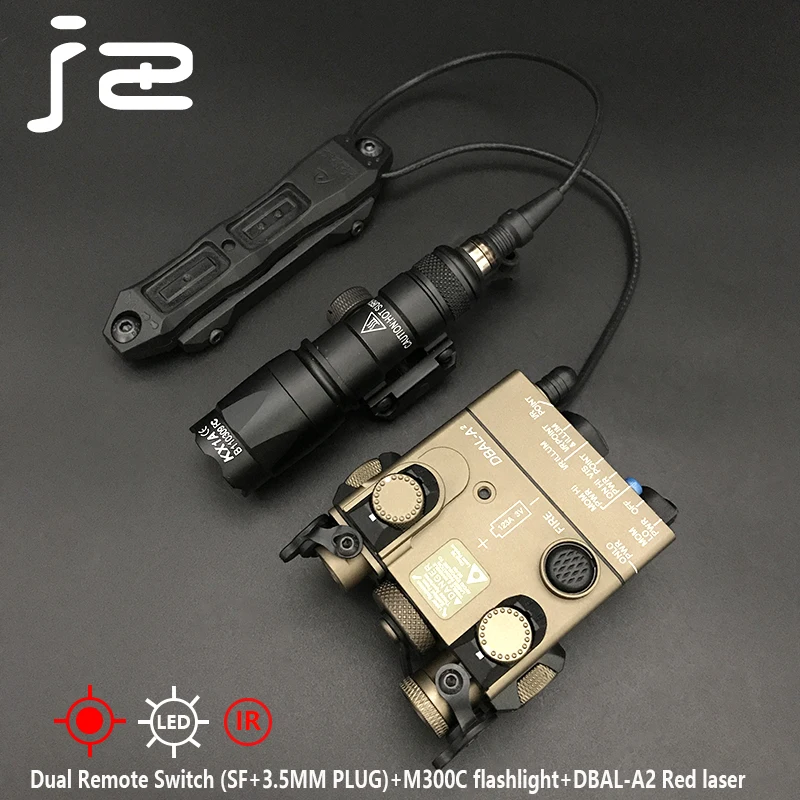 Metal táctico DBAL A2 punto rojo vista peq láser verde IR láser Airsoft Rifle caza armas luces Surefir M300 M600 linterna s