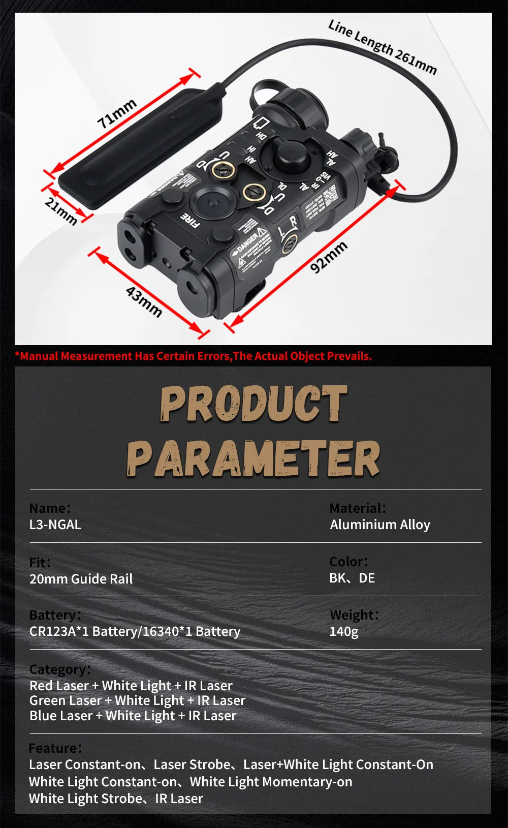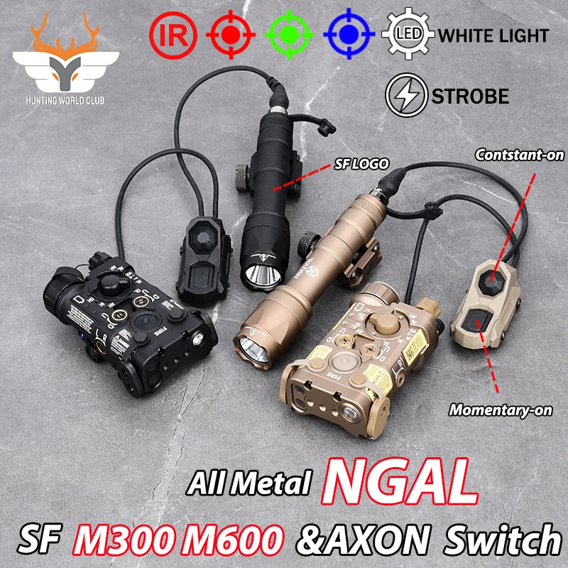 Metal táctico NGAL rojo verde azul indicador láser Surefir M300 M600C caza explorador luz axón doble Control interruptor ajuste 20MM riel