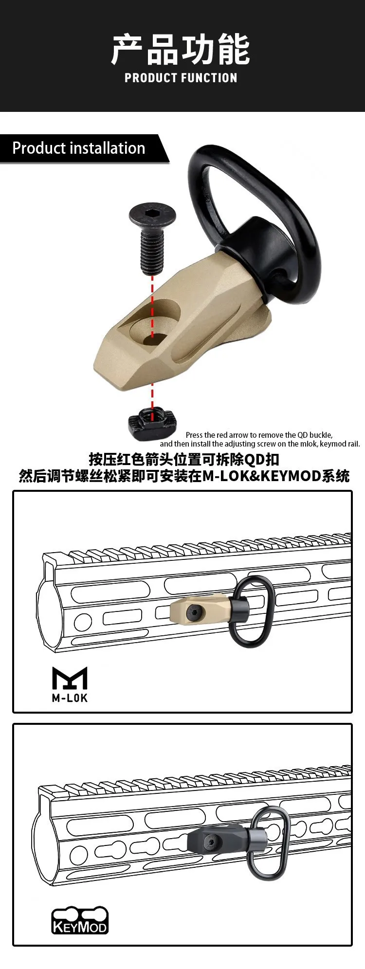 WADSN Fast Tactical Metal SI QD Sling Swivel Buckle Vertical Sling Base Mount 20mm Mlok Keymod Rail Airsoft Hunting Accessories