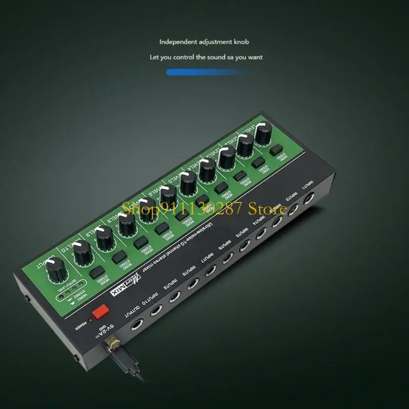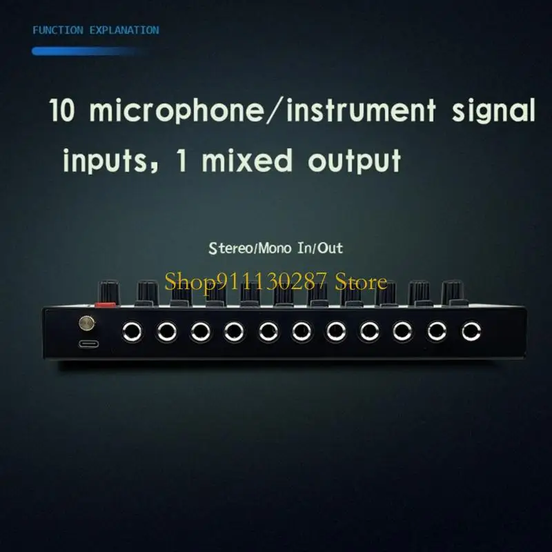 Equipado con soporte estéreo y función mono, este mezclador puede manejar múltiples fuentes de sonido, mezclándose perfectamente para una experiencia auditiva superior.