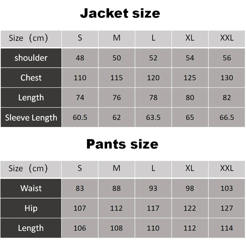 La chaqueta y los pantalones están hechos de tela extremadamente resistente, retráctil y resistente a las arrugas, fitness, transpiración de la humedad, transpirable, extremadamente duradero y de secado rápido, te mantiene seco y cómodo.