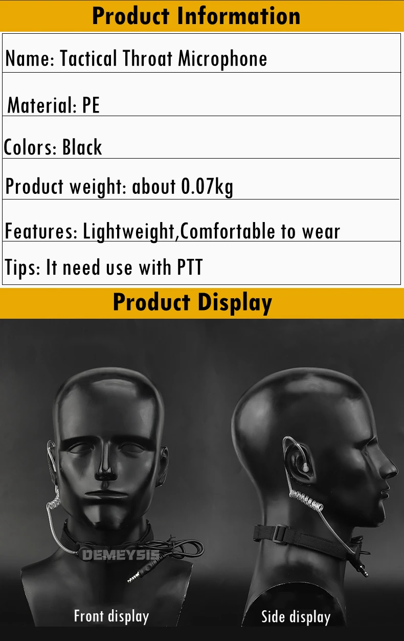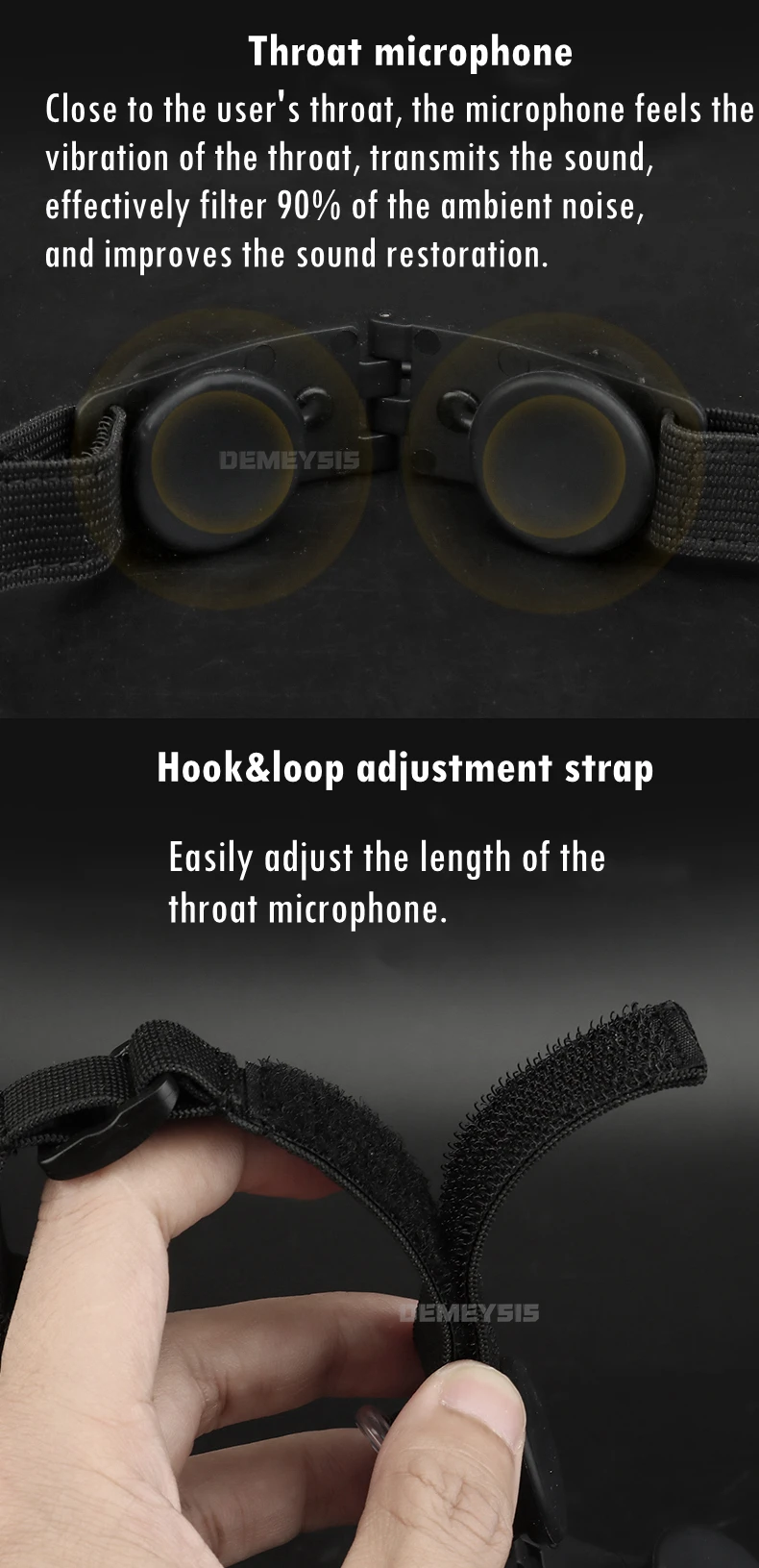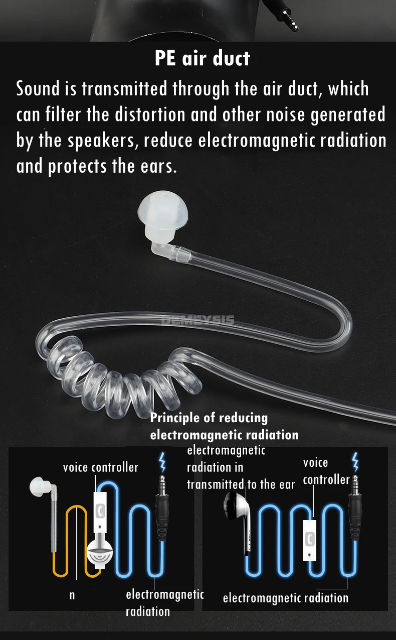 ● El micrófono de garganta hecho con conductos de aire de alta sensibilidad y orejeras de silicona transparente, reduce la radiación electrónica.