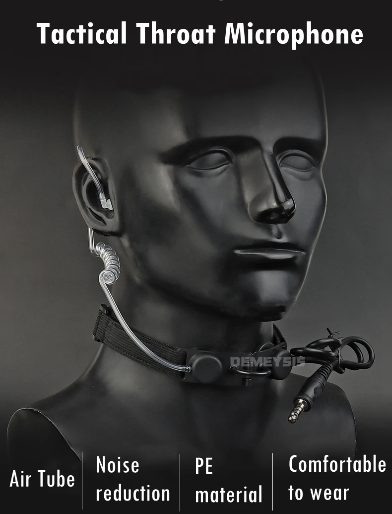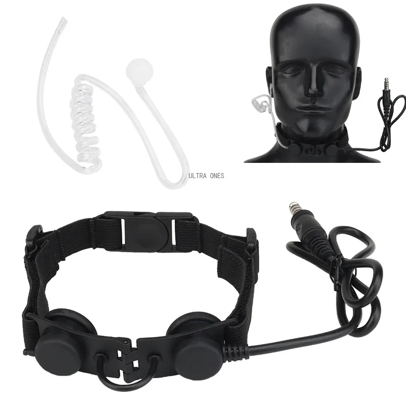 ●El micrófono de garganta hecho con conductos de aire de alta sensibilidad y orejeras de silicona transparente, reduce la radiación electrónica.