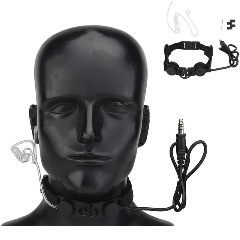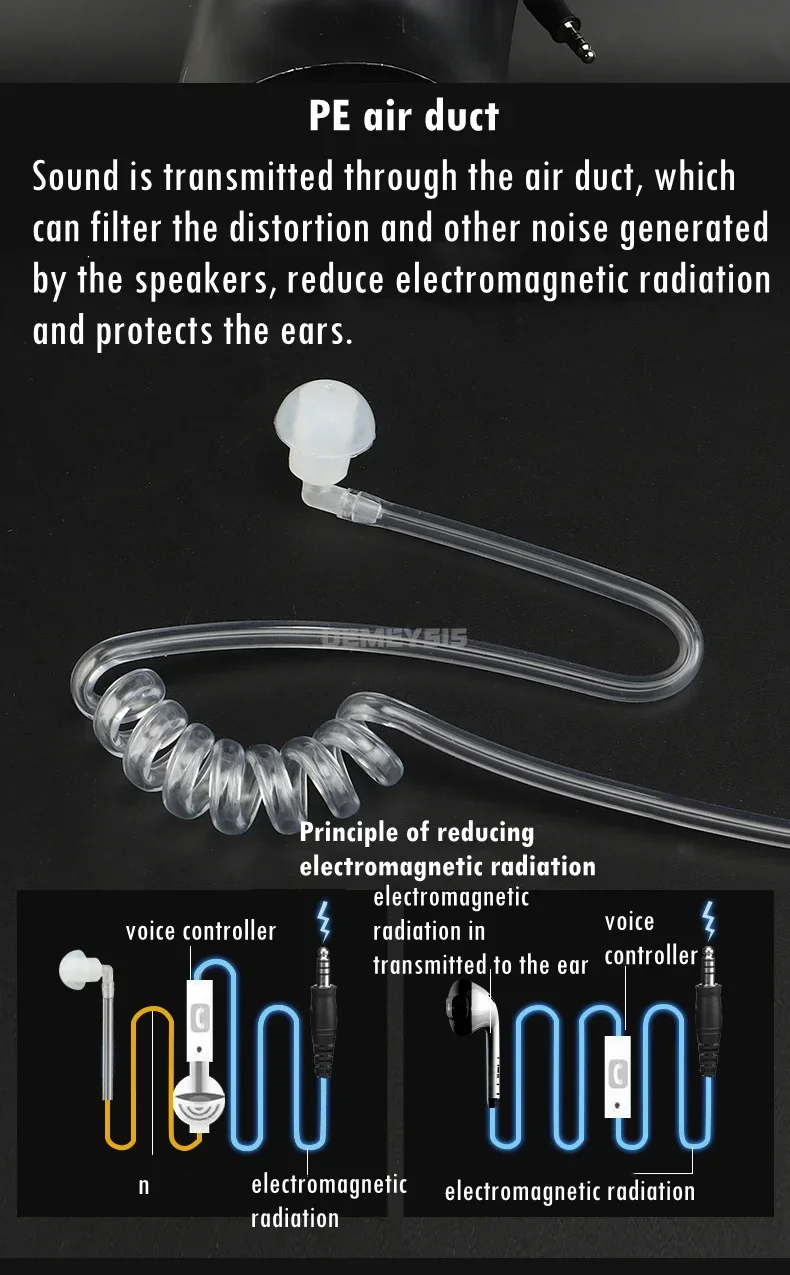 ●El micrófono de garganta hecho con conductos de aire de alta sensibilidad y orejeras de silicona transparente, reduce la radiación electrónica.