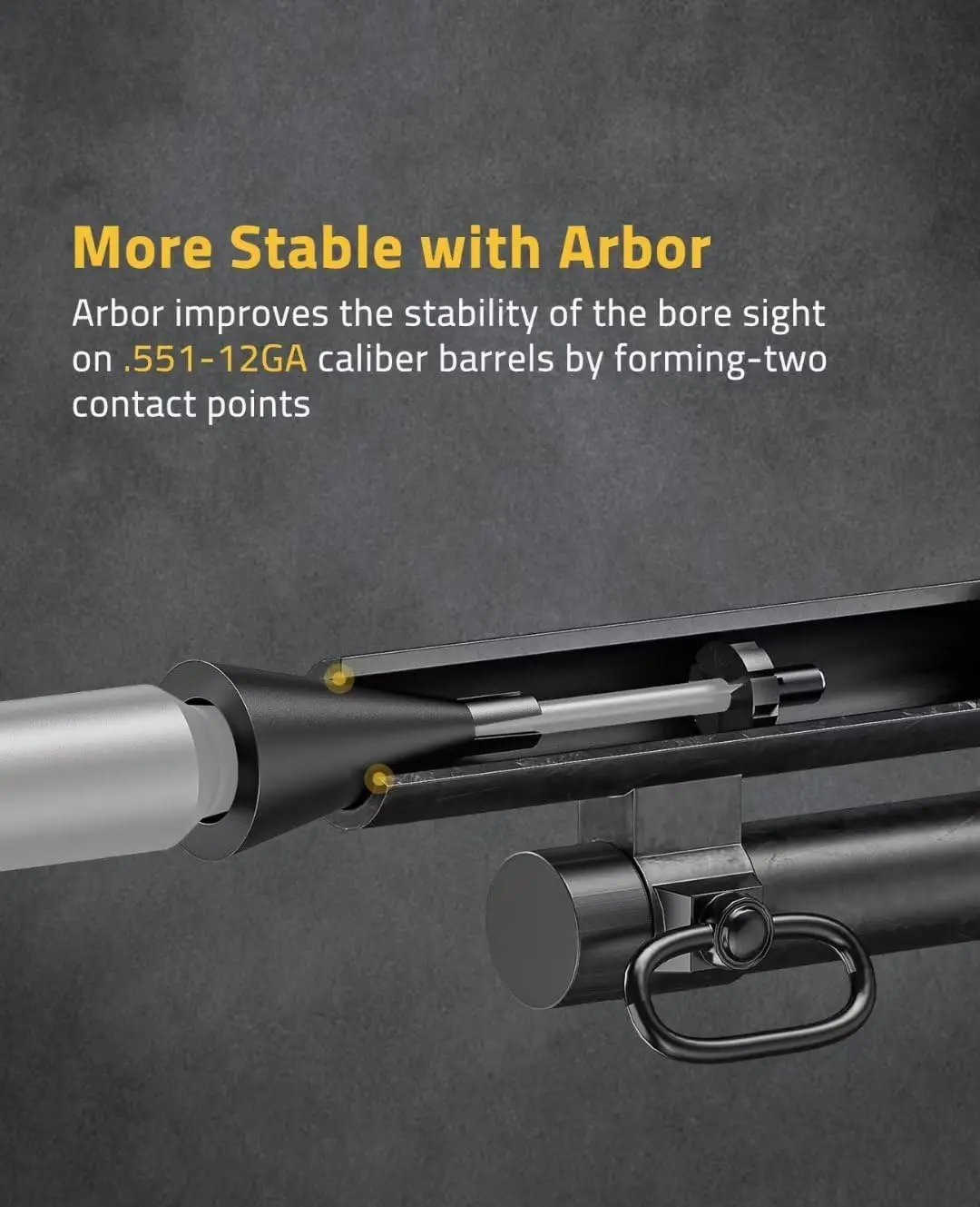 [Accesorios de cenador]: nuestro visor Láser viene con un eje como herramienta auxiliar. Para el Calibre. 551-12GA, la instalación del eje puede ampliar el diámetro del extremo trasero del boresighter, lo que permite que toda la mira del orificio se ajuste mejor en la boca del calibre. 551-12GA, mejorando así la estabilidad.