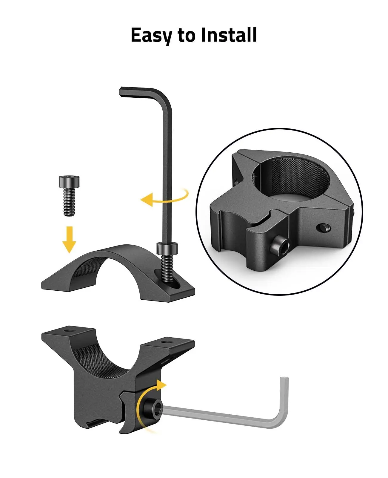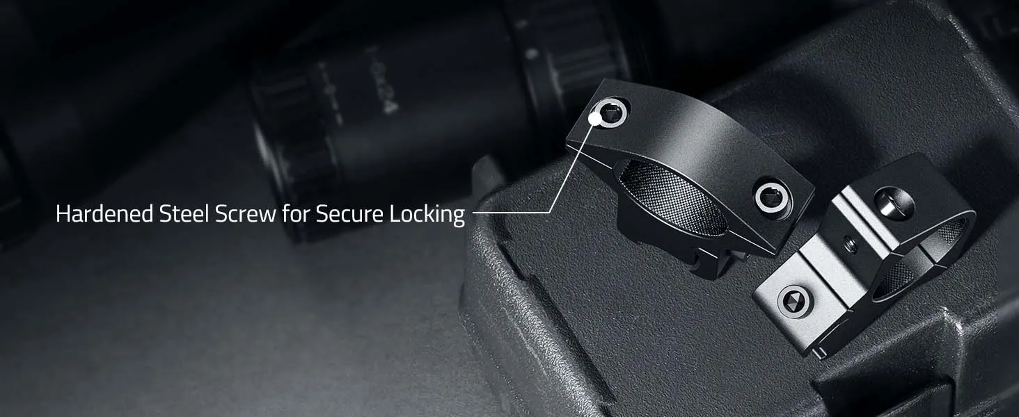 Montaje fácil y preciso: anillos de alcance Picatinny con 1 tornillo de abrazadera de riel y 2 tornillos de abrazadera de alcance, rápido y fácil de instalar. Precisión y alineación repetible.