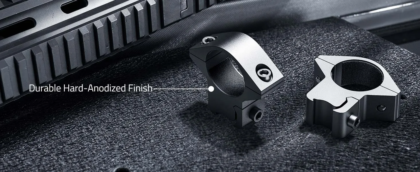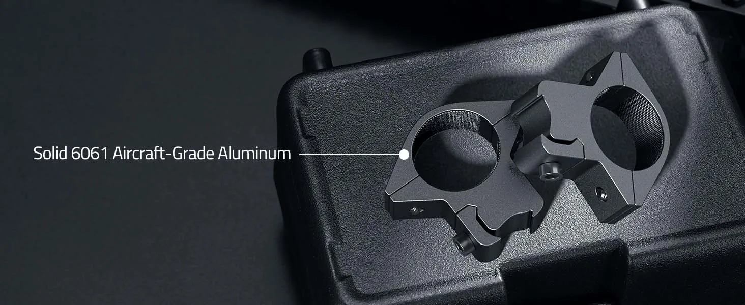 Monturas de alcance duraderas y ligeras: hechas de 6061-T6 aleación de aluminio anodizado negro con un acabado de grado aeronáutico, resistente y ligero.