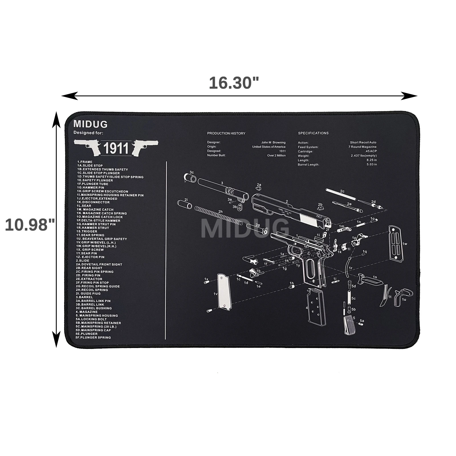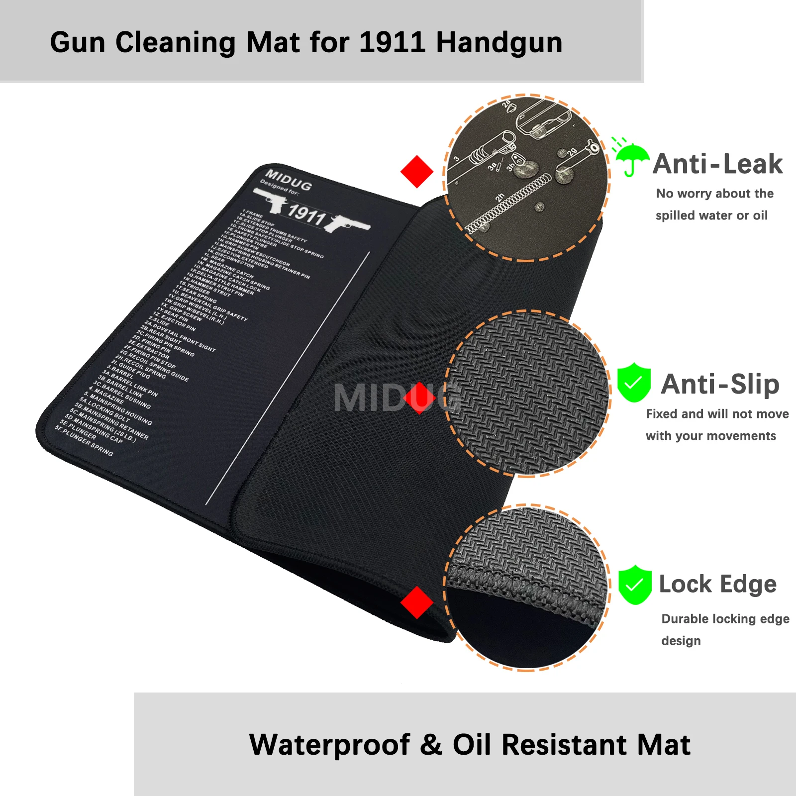 1. La alfombrilla de limpieza de armas es ideal para proteger tanto su escritorio como sus armas de fuego al desmontar y limpiar su arma.Incluso se puede utilizar como alfombrilla de ratón para juegos.Tamaño: 16,30'' X 10,98'', 1/8''(3 mm) de grosor, tiene suficiente espacio para armas pequeñas.Fácil almacenamiento.Simplemente enróllelo.