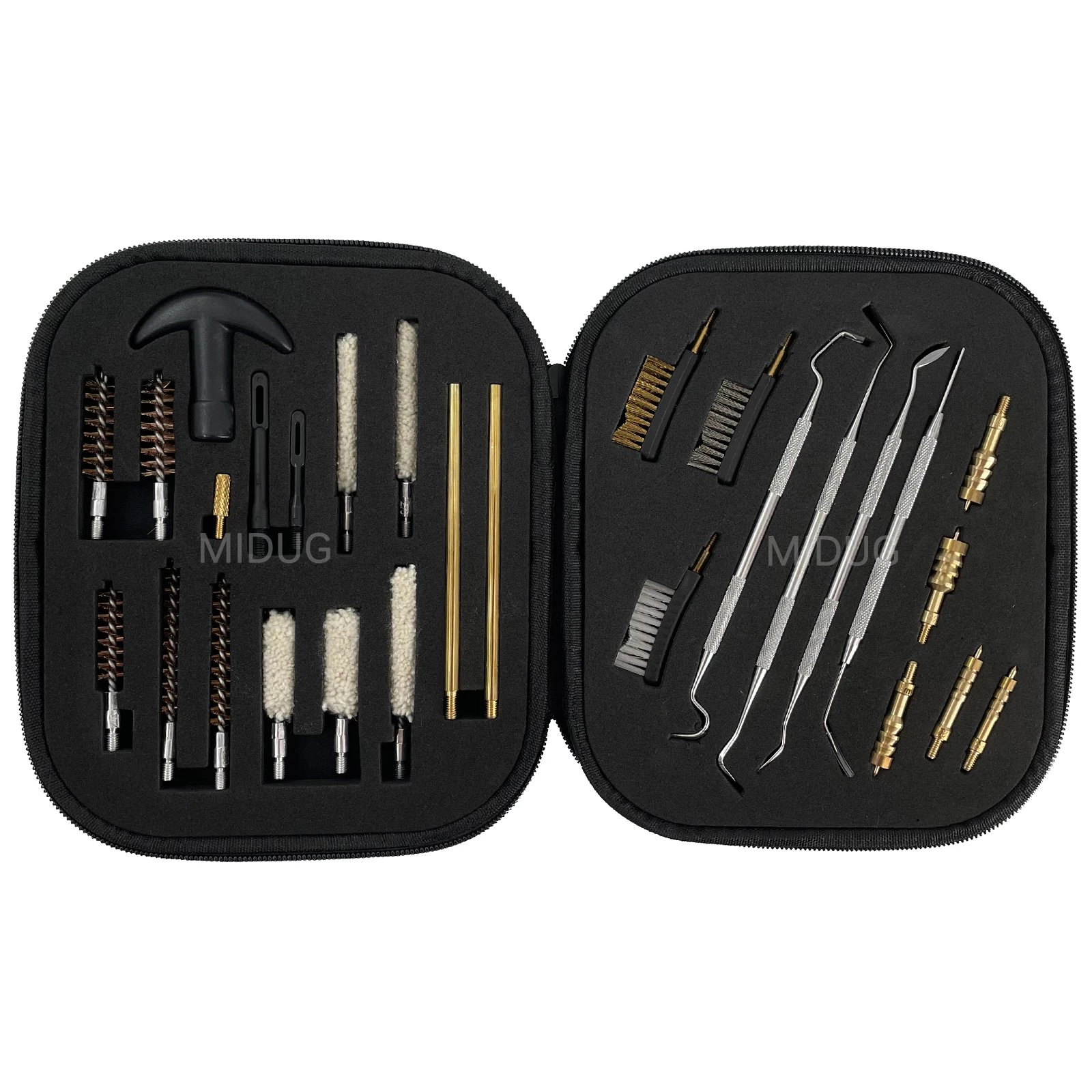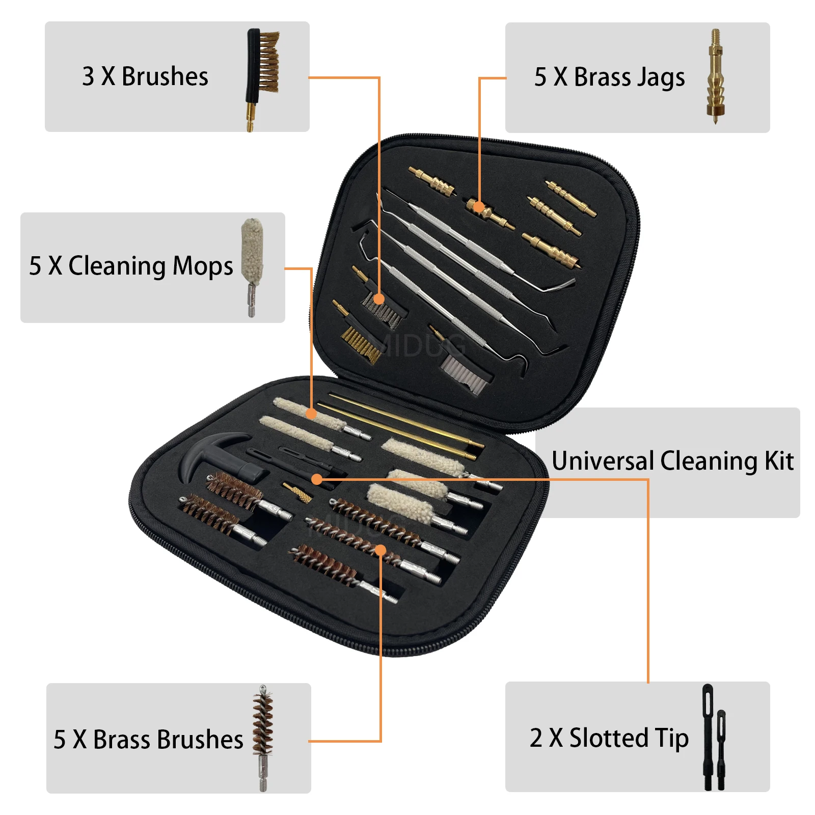 【Kit de limpieza de pistolas】Este pequeño kit incluye accesorios de limpieza de pistolas que necesita para los calibres de pistolas más comunes.Es conveniente para guardar todas las herramientas de limpieza y llevarlas consigo en caso de emergencia.El mantenimiento del arma contribuye significativamente a una vida útil más larga y mantiene su arma de fuego en las mejores condiciones.