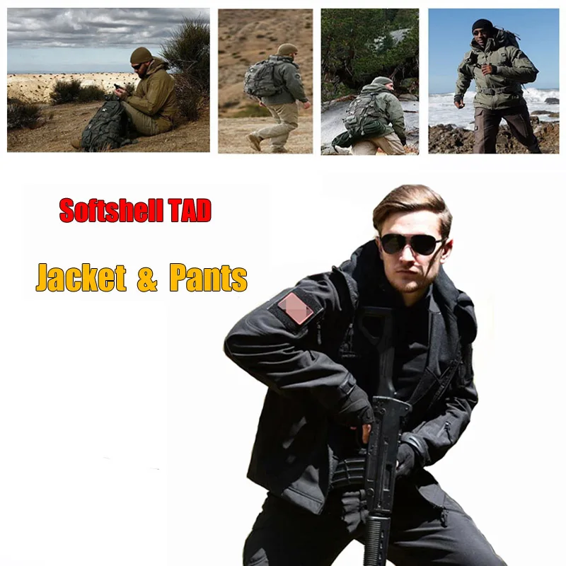 Hombres militares Softshell TAD hombres equipo y accesorios de Camping ropa de lana de caza traje de senderismo chaqueta táctica impermeable + pantalones