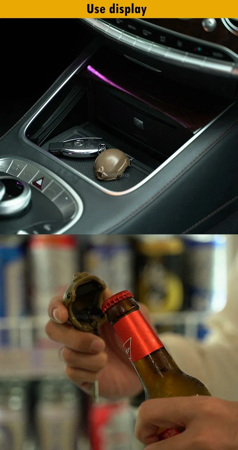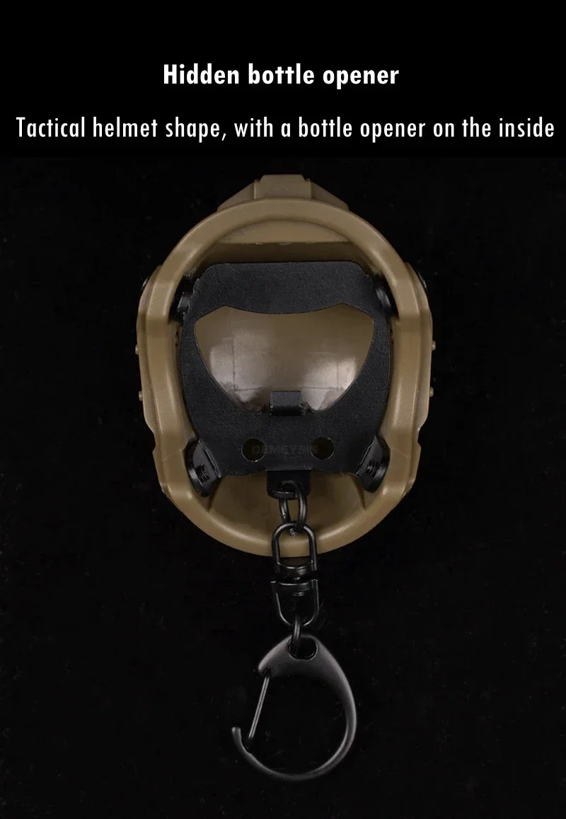 ●Abridor de botellas oculto.Forma de casco táctico, con abridor de botellas en el interior.