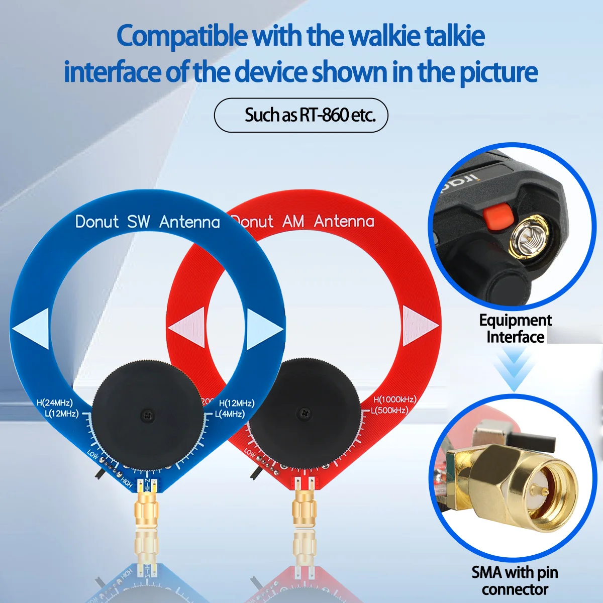 【Paquete incluido】:1 X antena SW de donut azul y 1 X antena AM de donut rojo