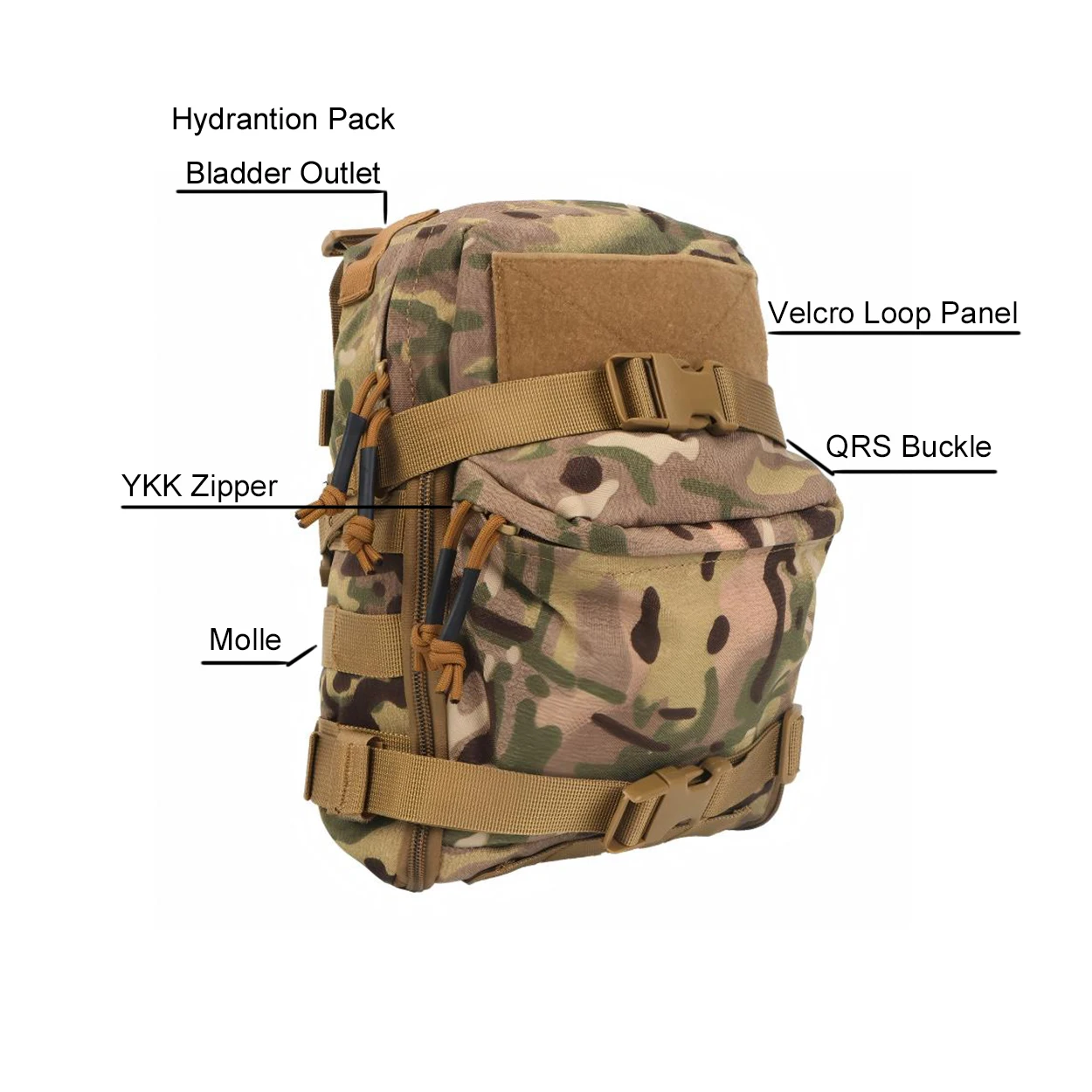 Mini bolsa de hidratación, mochila táctica para exteriores, transportador de vejiga de agua, bolsa con cremallera, bolsa de caza al aire libre, nailon 1000D para deportes al aire libre