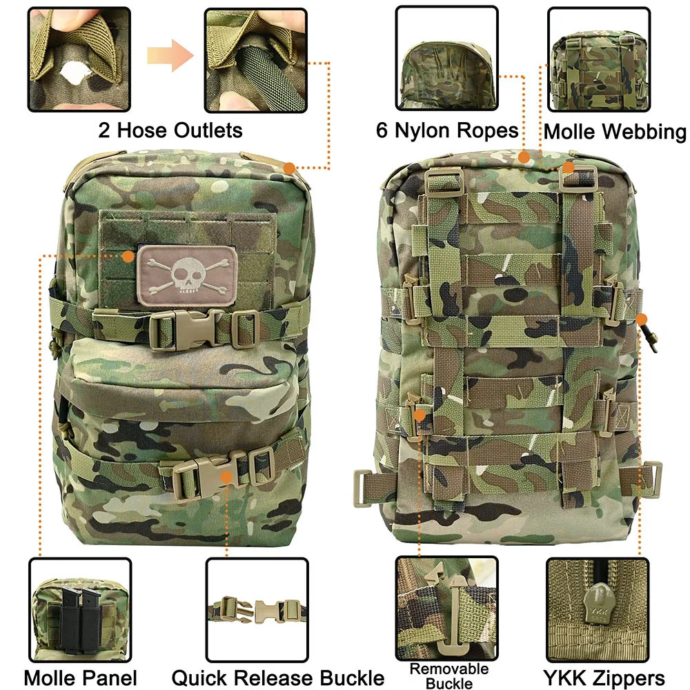 5 [Material de alta calidad]: la mochila de hidratación táctica está hecha de material duradero de alta calidadNylon 500D de calidad, con alta durabilidad, resistente al agua, resistencia al desgaste y función de secado rápido. Tamaño del producto: 33x19x10cm (AxWxD)